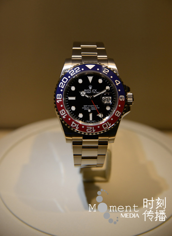 蚝式恒动格林尼治型 II 新款红蓝双色 Cerachrom 字圈是劳力士在技术与美学上的一大成就。藉由劳力士研发的专利字圈生产过程,制成一整块带有两种颜色的字圈。此设计与首款格林尼治型和格林尼治型 II 腕表的传统双色外圈遥相呼应。此外,这个创新字圈同时体现两大成果,首先,制作红色陶质字圈本身难度极高,随后更要调整每颗陶粒的化学成分,由里到外,把半边字圈由红色变成蓝色,而两种颜色亦需对比分明。劳力士 Cerachrom 字圈于2005年问世,具有极强的防刮损、抗腐蚀性能,即使受紫外线照射也不褪色。其表面经过钻石打磨,散发恒久光泽。陶质字圈上的24小时刻度,均以PVD(Physical Vapour Deposition,物理气相沉积法)镀膜技术填入一层铂金薄膜。