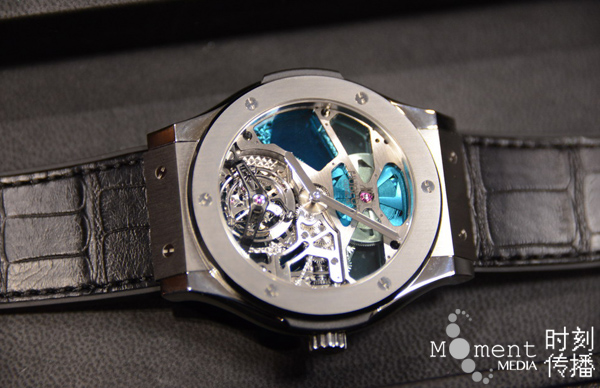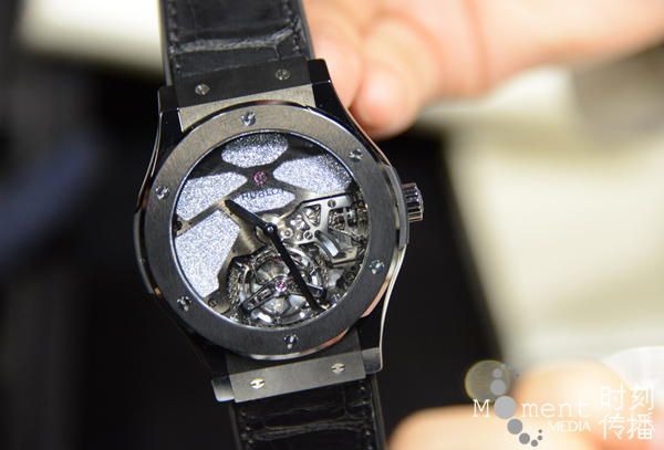 宇舶一如既往的将“创新与融合”进行到底,今年宇舶再次带来全新材质和全新工艺。地球上最稀有贵金属——锇,以世界首创晶体形态融入表盘。