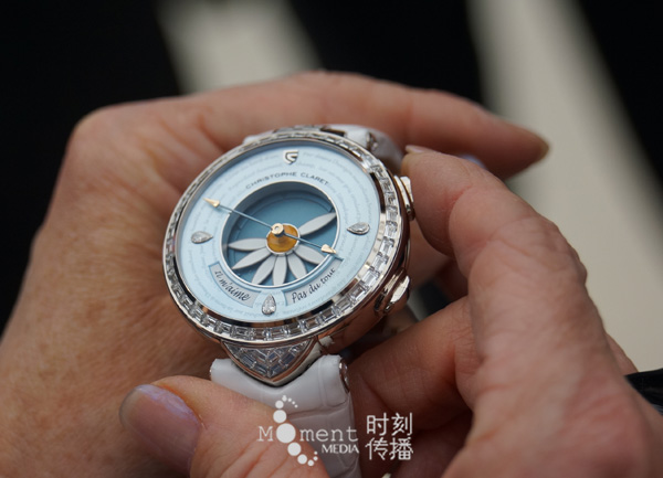 Christophe Claret首款为女士们度身定制的复杂腕表Margot将“花瓣挑选”的占卜小游戏实现到复杂腕表中,“他爱我...他不爱我……”,难以捉摸的答案充溢在一片精致的雏菊花瓣中,按下2点位按钮,开始为你的爱情占卜吧!