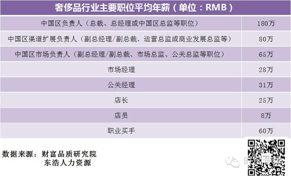 奢侈品行业主要职位平均年薪 随着2008年之后中国奢侈品市场的高速发展,奢侈品行业的人才需求也大幅度提升,保持了每年30%的人才需求增长速度,目前大约有14万人直接在奢侈品牌从业,主要从事在品牌、零售、设计、生产、客服、公关、媒体等职业;约有35万人服务于奢侈品行业,在物流、地产、教育、旅游、酒店、会所等产业服务奢侈品。但是,中国奢侈品行业仍然面临巨大人才障碍,57%的奢侈品牌认为人才缺口巨大,不能满足企业发展需要。我们财富品质研究院测算,现阶段中国整个奢侈品行业管理岗位约有3000人缺口,优秀店长有4500人缺口,职业买手有2000人缺口,优秀店员缺口不低于3万人。财富品质研究院预测,未来中国奢侈品行业最具有薪酬增长潜力的5个行业职位将是职业买手、店长、客服经理、维修保养专业人才以及专业市场研究人员。 最具薪酬增长潜力的5个奢侈品行业职位 所以,在人才不足的情况下,通过猎头挖角便成为了奢侈品行业招聘的主要渠道,44%的奢侈品牌选择了高级猎头服务,特别是店长以上的管理层人员。高级猎头虽然作为奢侈品牌最主要的付费服务项目,但是让奢侈品牌获得最多人才的却是“员工推荐”,我们本次对奢侈品从业者的调研发现,有35%的员工是通过“员工推荐”进入品牌工作的。 频繁的相互挖角是导致奢侈品行业薪酬一路高涨的主要原因之一,越是知名奢侈品牌的从业者流动性越频繁,知名奢侈品牌一定程度上成为很多从业者职场的镀金池,当工作1-3年后,他们便会以此为资本寻找更好的工作机会和更好的发展空间。当然,这也是奢侈品牌认为离职率高的主要原因之一。 工资上涨幅度是吸引和稳定员工的基础,一个不涨薪的品牌很难维持员工的稳定性。就奢侈品从业者的工资涨幅来看,81%的奢侈品从业者表示,月薪每年都会随着工龄和职位的增加而上涨,上涨周期约是半年和1年,平均涨幅幅度主要集中在10%-30%,这比一般其他行业的年工资涨幅要高一些,可以看出奢侈品行业比其他行业更加缺少人才,这与行业快速发展有很大关系。从职位来看,管理层的月薪涨幅要高于基层员工,管理层月薪涨幅主要集中在10%-30%,而基层员工的月薪涨幅更多的是在10%以下。这主要是因为基层员工的替代性较高,而一个优秀的管理者很可能影响到整个品牌的运营,在月薪涨幅方面相比基层员工要高很多。 就具体的福利内容,奢侈品行业与其他行业相比在项目类别上并没有大的差异,最大的不同主要集中内部折扣方面,87%的奢侈品牌员工可享受购买本品牌的价格折扣,通常是8折左右,部分高级管理层可以享受5折优惠。 在旅游和培训方面的福利,奢侈品行业比其他行业要明显高很多,63%的奢侈品从业者表示他们有完善的培训体系,并且70%的奢侈品从业者表示他们曾经有过出差旅游或福利旅游的经历,而知名奢侈品牌负责人曾经有过公司提供旅游经历的几乎接近100%,并且很多旅游是和培训相结合。 从整体来看,奢侈品从业者对自己的薪酬福利表示满意,有超过一半的奢侈品从业者对自己的薪酬福利表示基本满意(56%),其中有28%的奢侈品从业者认为自己的薪酬福利水平要比其他行业的高。另有15%的从业者则表示对自己的薪酬不满意,认为自己的薪酬福利低于其他行业,这部分从业者多为奢侈品行业的基层员工,行业经验缺乏,但自我设定的薪资目标高,所以非常不满意自己的薪资水平。 所以,就跳槽意愿来说,61%的奢侈品从业者表示近一年不会考虑跳槽,29%表示有跳槽意愿,10%表示不确定。总体来看,奢侈品行业人员流动性较低,相对稳定。这主要是因为奢侈品从业者对现有的工作条件、薪酬福利待遇以及职业发展空间都还比较满意,但这个事实却和奢侈品行业人力资源管理人员的观点相差较大,奢侈品牌自我普遍感触人员流动率高,但如果和快消行业相比,特别是和以门店服务为主要模式的行业相比,奢侈品行业的人员流动率还是要低很多。 但是,奢侈品从业者的工资水平并没有外界预期的高,统计结果显示,55%的从业人员认为与其他行业相比,奢侈品行业的工资水平并无明显差异。这说明人们对奢侈品行业存在一定的期许,但是这部分期许更多的是针对管理层,大家在谈到奢侈品从业者薪资的时候,通常认为的是运营管理人员,管理层的薪酬基本与人们的预期相吻合。当问及外界对店面人员的工资预期时,基层的店员实际工资水平低于人们的预期,即店员的薪酬待遇并不如人们想象的那样高。 从受教育背景来看,奢侈品行业的从业者普遍较为年轻,以70后和80后为主,大部分拥有较好学历背景,80%以上的店员在本科学历以上,是优秀人才集中度最高的行业之一。特别值得一提的是,奢侈品行业是名校毕业生、海归、官二代和富二代最青睐的行业,他们大部分选择在奢侈品行业就业或者创业。 与其他企业相比,奢侈品牌会更在意员工的资历经验,这主要是因为中国的奢侈品市场发展不过20余年,本身行业内的资深人士就不多,随着诸多国际奢侈大牌纷纷进入中国,行业人才短缺的现象越加严重。另外,要培养一名具有丰富行业经验的员工成本非常高,所以奢侈品牌非常喜欢有从业经验的员工,这和财富品质研究院调研的结果相吻合。通常月薪在30000元以上的管理层,一般行业内经验都在5年以上。因此,要想在奢侈品牌做到更高职位并获得更高收入,积累行业经
