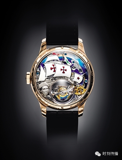 真力时尊贵系列哥伦布飓风腕表:采用珐琅、镌刻和微绘等大师工艺,装点航海盛况。 鉴赏一块珐琅表,除了要看整体盘面所展现的主题元素,图案是否独具韵味或者出奇制胜,颜色的搭配是浓烈华贵还是雅致清丽。一个作品整体所呈现的灵性、美感,颜色搭配的微妙平衡,这些都和设计制造者的艺术修养紧密相关。更主要的就是看工艺是否讲究,就要看工艺的复杂程度,毕竟是纯手工制作完成的。图案越复杂制作的难度也越大,成品率越低。其中以掐丝珐琅工艺最为复杂,掐丝珐琅现在用的最细的金丝达到0.04毫米,可以说,越细的金丝表现图案更加地细腻,生动。