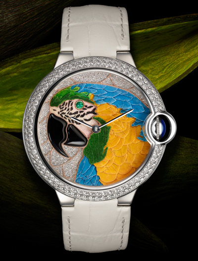 【导语】腕表的盘面,主要用于显示时间,同时关系到手表的设计。常用的表盘材质大致可分为金属、珐琅、珍珠贝母及碳纤维表盘。如今在制表行业,开始出现一些“特殊”的表盘材质,尽管在它们中,有的出身卑微,却也同样能展现手工艺的醇美与高贵。以下介绍的五款腕表,它们的材质之特殊与坚韧超乎你的想象,不服不行! ARTYA-Son of a Gun Target:大炮、火药、金箔的混合体 不走寻常路的ArtyA品牌,酷爱奇材,更是一个名副其实的奇才。该品牌首创时间和火枪的独特组合,Son of a Gun Target腕表正是其才华和脱俗的最新明证。表盘和表圈上饰有靶心图案,表盘上不再采用飞行的子弹,取而代之的是大炮火药和金箔混合的痕迹。表耳上镶嵌32颗钻石,成为最震撼的一大组合。一款由Yvan Arpa设计的威力四射的腕表武器。 爱马仕麦秆镶嵌Arceau腕表:独一无二麦杆镶嵌 Hermès(爱马仕)将“麦杆镶嵌”工艺首次呈现于表盘上。这需要高度繁复的微型化技巧,此项极度精密的表盘工艺成就,不同于家具制作,它需要非常长时间的准备来执行后续的工作。据爱马仕工作人员介绍,镶嵌的麦秆仅有法国境内一处农庄才能生产,因为每根麦秆的颜色都不大相同,所以镶嵌出的表款也是独一无二的。 那不勒斯皇后系列腕表:精湛绝伦贝壳浮雕 Petite Fleur钻石之花珠宝腕表,其与众不同的惊艳表盘全部由宝玑御用贝壳浮雕艺术家精刻而成。极为细腻的雕刻图案是由技师凭借一支简单的钢针在贝壳的不同层面上刻划而成,其刻纹深度不足兩毫米。为了达到这一效果,技师需要对贝壳的色彩、层理、透视度、层次以及整体的透明效果进行仔细筛选及检验。 卡地亚镶花鹦鹉腕表:用花瓣演绎精致表盘 在卡地亚为2014年推出的最具艺术性的高端奢华腕表系列中,亮点无疑是这款限量版手表——它的表盘是一只由花瓣构造而成的鹦鹉。花瓣被精心风干保存、切割,然后在表盘上排列成鹦鹉胸前羽毛的样式。表盘中唯一非花的部分,则是由宝石和玛瑙所组成。设计中用玛瑙体现鹦鹉的喙,而祖母绿则用来为鹦鹉点睛。 卡地亚Santos-Dumont骏马装饰腕表:马赛克方形宝石构成 Santos-Dumont骏马装饰腕表,超大号表款,18K白K金,宝石镶嵌马赛克方形宝石构成的遐想画面,展现强烈写实主义色彩宝石镶嵌马赛克工艺可以算是卡地亚的最新创作利器。风景石、喀拉哈里碧玉、马达加斯加灰玉、巧克力色黑曜石、粉色蛋白石——这些宝石经过卡地亚工艺大师的妙手制作,构成了令人称奇的画面。方形表盘空间内,大量形状不规则的微小方形宝石构成了一幅骏马画面。栩栩如生的骏马,仿佛要腾空而起。 |