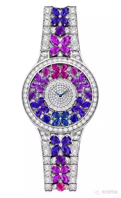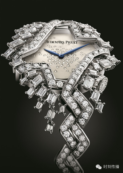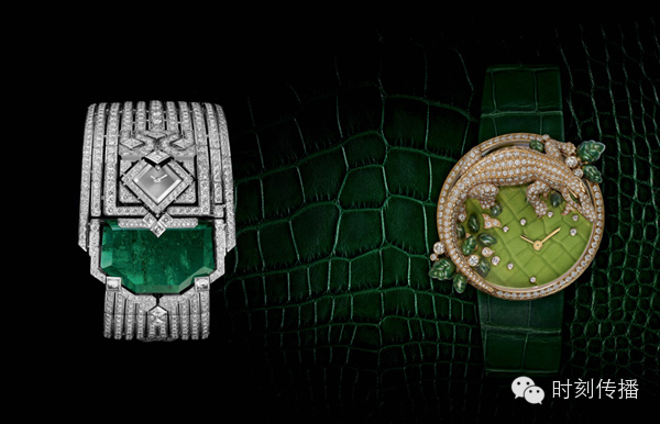 提到高珠宝表,伯爵是万万不能缺席的。自上个世纪七十年代以来,神秘腕表便成为Piaget伯爵的代表作之一。此枚腕表将时间隐匿起来,专为有心解读的人士而制,兼具神秘气息与女性韵味。玫瑰花花瓣采用雪花式铺镶工艺,仅镶嵌过程就耗时70小时,从而营造出纯净闪亮的效果。花瓣造型呈现精致的时尚感及和谐的平衡感,将Piaget伯爵珠宝制作工坊孕育已久的专业技艺展露无遗。 爱彼28.5毫米高级珠宝女装腕表 高级珠宝腕表的创作直至今日依然复杂,需要设计师、宝石镶嵌师、雕刻师以及制表师携手合作方能完成。爱彼就拥有一支技艺超群的团队,这款腕表是其以449颗美钻点缀最新的艺术杰作。这一表款的魅力之处在于其通过非对称与对称线条的应用,巧妙融合了新艺术浪潮的自由风格与装饰艺术的几何架构,别具一格。为增添动感,表壳更围绕垂挂着长阶梯形切割钻石吊饰,以随佩戴者的摆动而摇曳生姿。 卡地亚L’HEURE ENVOUTEE DE CARTIER系列 这个系列诞生于卡地亚两大工艺的邂逅:罕见的宝石绝技与栩栩如生的华丽动物造型。这些创新之作将形状与色彩关联,图案与光芒相系……钻石、祖母绿或黄K金编织出相互搭配的游戏。高级珠宝隐秘腕表(左)镶嵌重达33.51克拉的祖母绿和明亮式切割圆钻,装饰艺术风格的钻石线条熠熠生辉,位于钻石褶裥下方的精巧表盘若隐若现。鳄鱼装饰腕表(右)镶嵌明亮切割圆钻,珐琅叶片,祖母绿眼睛,深邃的祖母绿饱含葱翠,浓郁而醇厚。 GRAFF 格拉夫全新蝴蝶系列珠宝腕表 蝴蝶一向是格拉夫设计团队的灵感泉源,先后启发了经典蝴蝶系列,蝴蝶造型系列,以及近年推出的蝴蝶幻影系列。 每一个系列都各具特色, 耀眼动人的钻石和色彩斑斓的宝石互相辉映,完美呈现蝴蝶飞舞时跳脱轻盈的感觉。蝴蝶图案以四颗梨形切割钻石巧妙拼接而成,简单华贵,四周簇拥着一圈璀璨晶莹的钻石。每一颗剔透的白钻也由格拉夫的宝石专家精心挑选,并由巧手工匠手工镶嵌,营造生动立体的效果。中央的表盘则以密钉镶法镶满小钻,是瑞士高超的制表工艺的最佳典范。