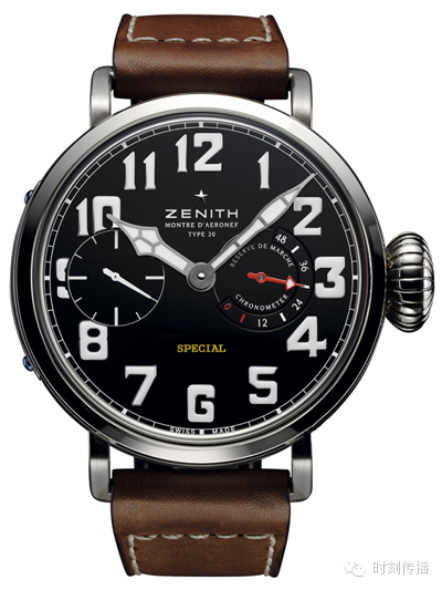 2012年真力时曾推出一款复刻飞行员表:Type 20飞行器。这块“飞行器”表极富航空导航仪的气势,腕表直径达57.5毫米,全黑的表盘上,以Superluminova超级夜光物料的浮雕加粗数字标示时间;复古的洋葱形表冠接近15毫米大小,表耳间距也达到了27毫米。