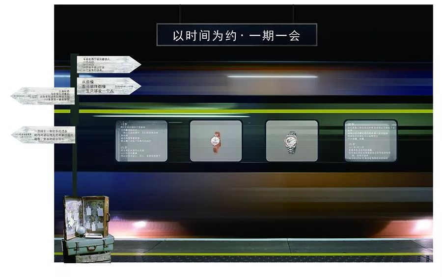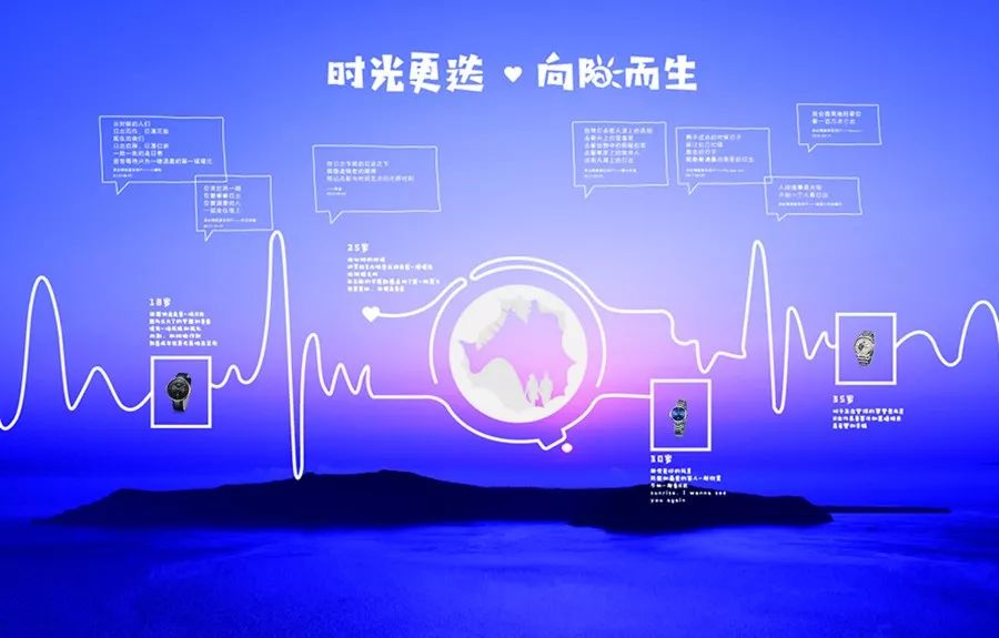 作为探爱之旅的最后一站,腕表陈列区结合日出印象展厅和火车站展厅,将不同年龄层为爱执着的内心独白,串联成一段段刻骨铭心的时光烙印。