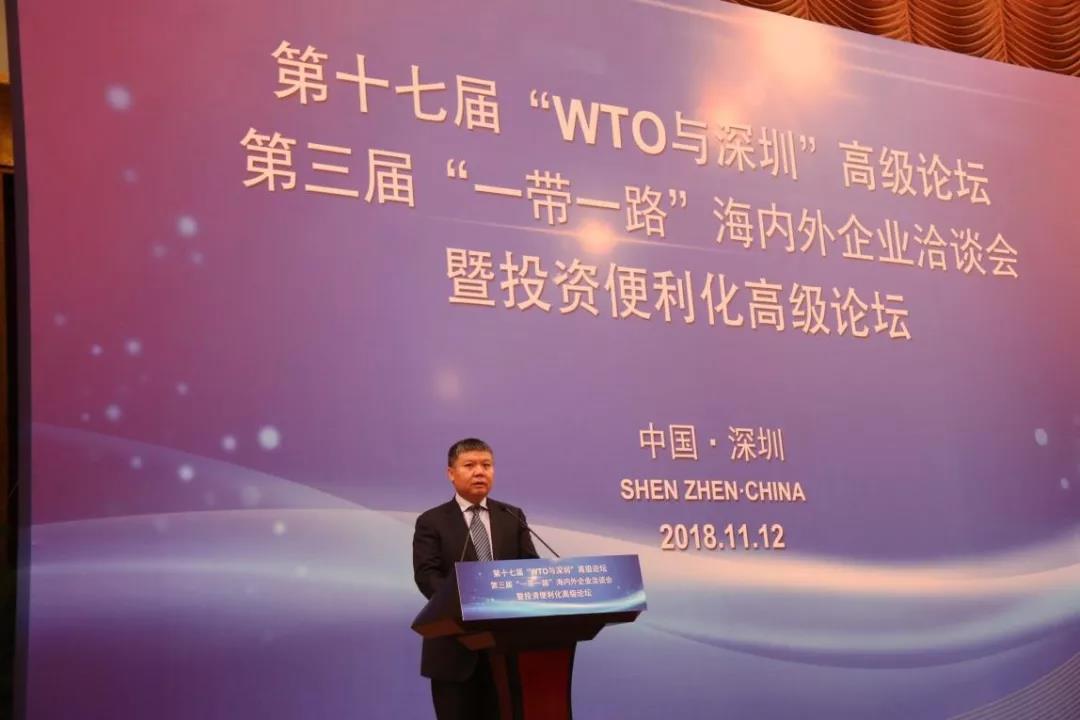 11月12日,由深圳市政府、中国世贸组织研究会等主办,深圳市公平贸易促进署等单位承办的第十七届“WTO与深圳”高级论坛在深圳市五洲宾馆开幕。本次论坛以“推动‘一带一路’投资贸易便利化,构建全面开放新格局”为主题,来自国际贸易、WTO规则及经济发展研究方面的权威、专业、资深的专家围绕国际贸易形势、“一带一路”投资发展与深圳优势的有机结合,进行演讲与互动。