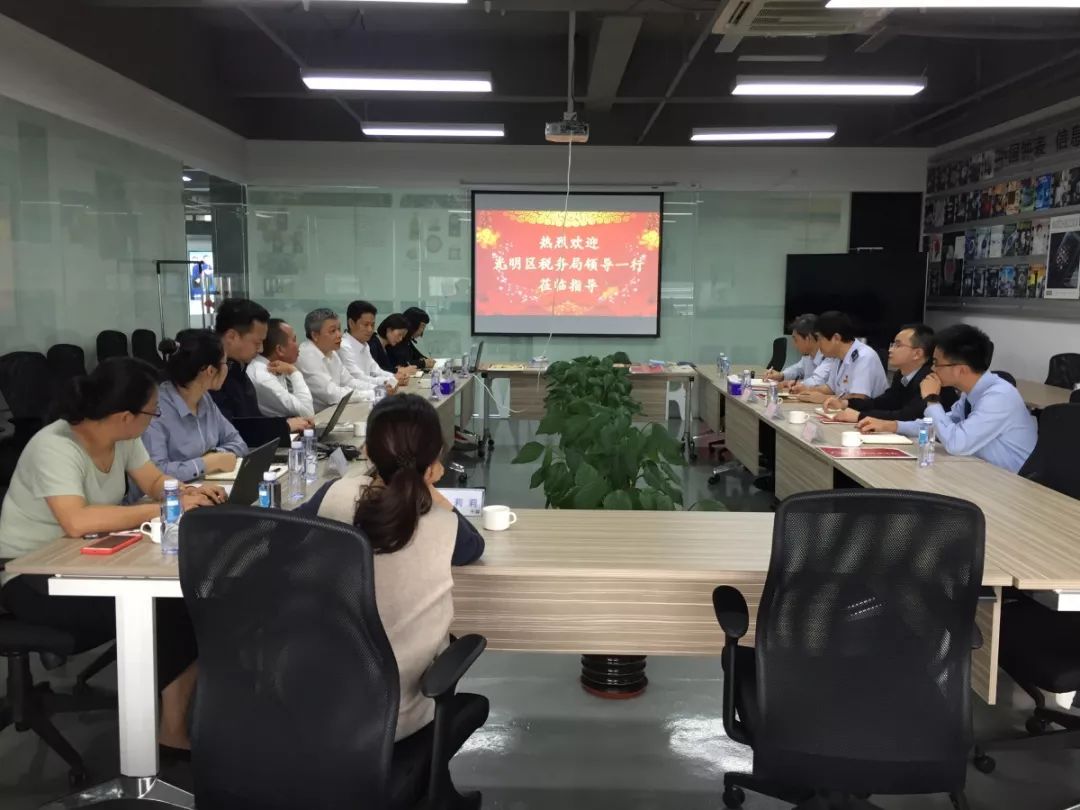 3月1号下午,光明区税务局副局长张立亲自带队与税源管理一科科长骆运枫、副科长潭志浩、法制科副科长姚江等到位于时间谷的深圳市钟表行业协会进行调研走访,向企业宣传减税降费政策措施,聆听企业意见建议及涉税疑难。