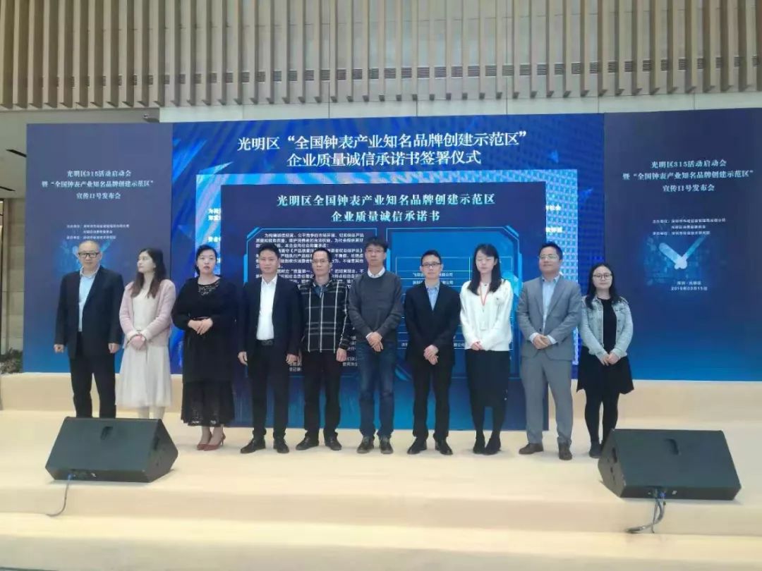 2019年3月15日,光明区315活动启动会暨“全国钟表产业知名品牌创建示范区”宣传口号发布会在时间谷格雅大厦隆重举行。