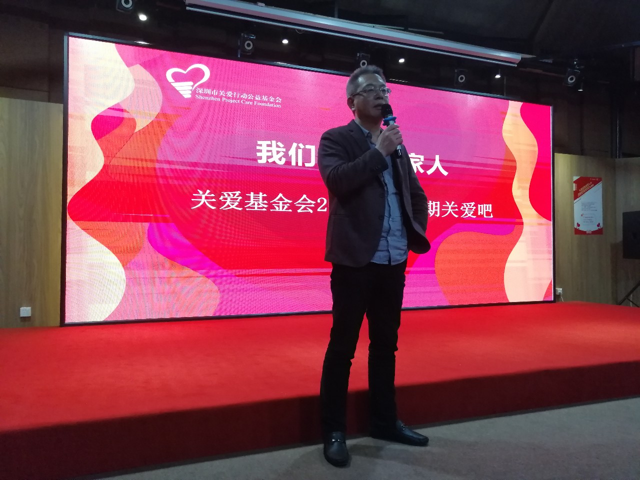 他说,深圳是一座因为广泛开展关爱活动而更加令人瞩目、受人尊敬的爱心之城,而深圳市关爱行动公益基金会就是为了推动关爱行动而诞生的。多年来,关爱基金会凝聚了数千万人次爱心捐赠,推出和资助的关爱项目数千个,累计筹集善款逾2亿元,公益支出超1.65亿元,受惠人群数百万人次。因此也荣获深圳市首家5A级基金会、全国先进社会组织等系列荣誉。可以说,深圳市关爱行动公益基金会为深圳这座文明和谐的关爱之城做出了重大贡献。而这爱心成果的背后,是在座各位及社会各界爱心人士的共同努力、共同爱心奉献的结果!“关爱路长,善者致远,今年是新中国成立 70 周年,是脱贫攻坚、决胜全面建成小康社会的关键之年。深圳作为改革开放的受益者,在新的历史起点上,我们应继续秉承深圳“关爱、感恩、回报”的精神,奋力担当新的伟大历史使命,为建设更加繁荣美好的祖国和幸福家园继续努力!”