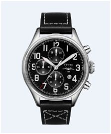 表盘设计采用三个子表盘的复杂功能设计,与表壳风格相协调。其中12小时计时表盘和秒盘分别置于6点、9点位,读时直观便捷。3点钟位置为双历显示窗口。左窗为AM/PM功能显示,右窗为常规日历,能够让航天员清晰辨识地球时间。在12点的位置,设有45分钟特征计时盘,辅以橙色和浅卡其色的弧线,警示任务完成的时间进度。这一功能源自中国航天员首次执行出舱行走时掌控时长的需求,是航天表区别于一般复杂计时腕表的鲜明特征。
