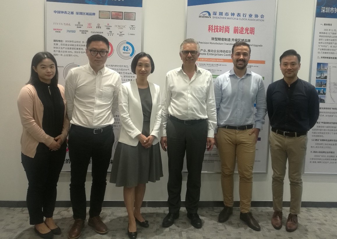 深圳市钟表行业协会秘书长杨景雯主持接待。座谈会上,杨秘书长为来访客人概要介绍了光明区在粤港澳大湾区的区位优势及未来打造科学城的发展规划,详细介绍了深圳市钟表行业协会及关联机构立足时间谷开展中瑞创新合作试点的商务、技术合作情况,包括时间谷未来再上述领域的工作计划。
