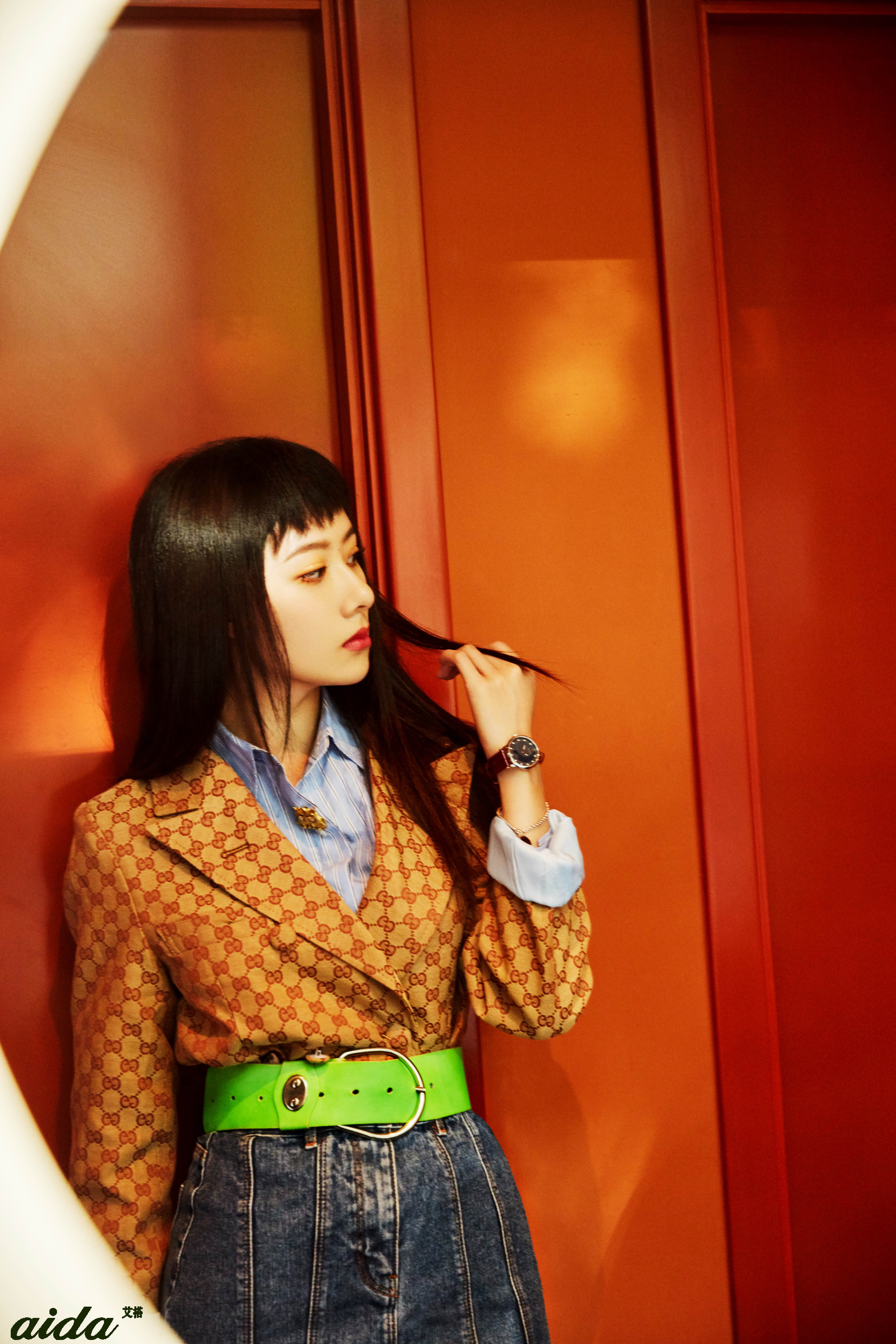 该款腕表采用繁星闪烁的镶钻时标搭配静谧蓝表盘,配以新月暗纹点缀恰到好处,简约中透露着大气。正如新晋偶像曹曦月身着西装外套混搭牛仔短裙,休闲中不乏前卫风,腕间搭载该款红色皮质表带,更是完美呈现出腕表与时装搭配的时髦感。