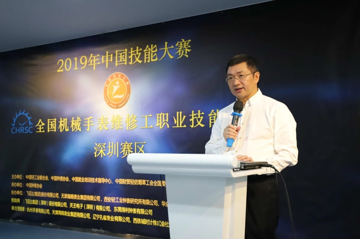 近日,2019年中国机械手表维修工职业技能竞赛(深圳赛区)在飞亚达钟表大厦举行。全国机械手表维修工技能竞赛组委会执行主任、中国钟表协会理事长张宏光及一众组委会成员,公司总经理、深圳市钟表行业协会副会长陈立彬,深圳市钟表行业协会秘书长杨景雯以及30多位钟表维修工匠参加了赛事启动会。
