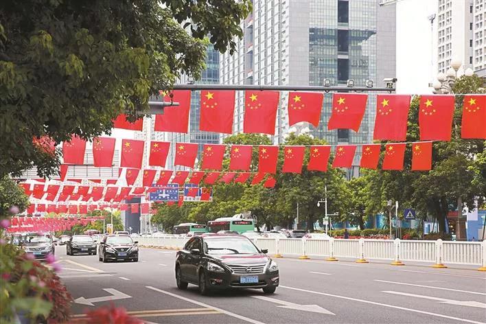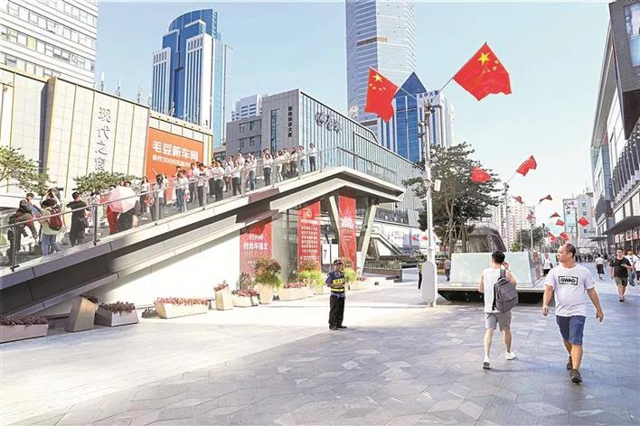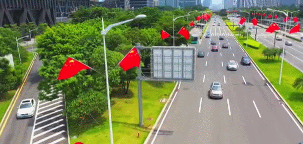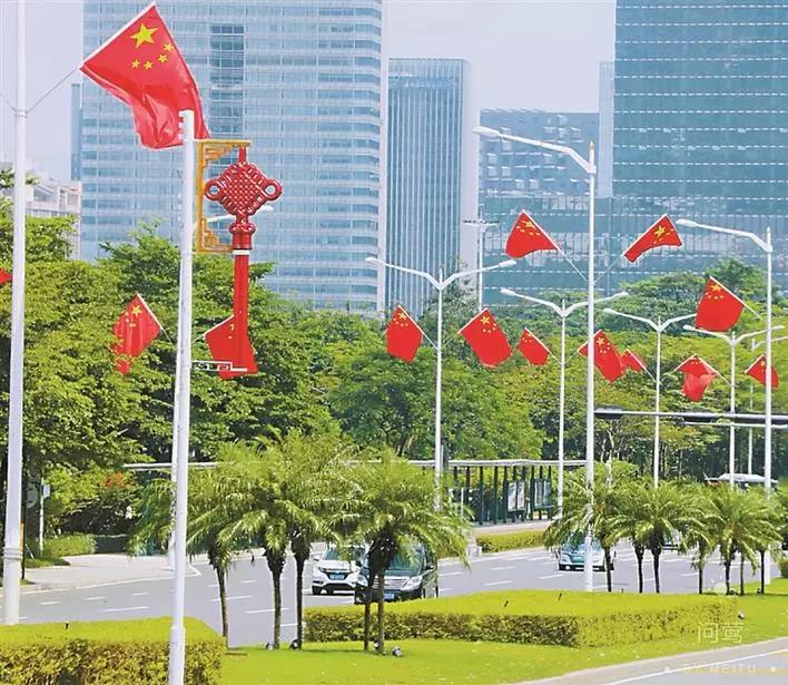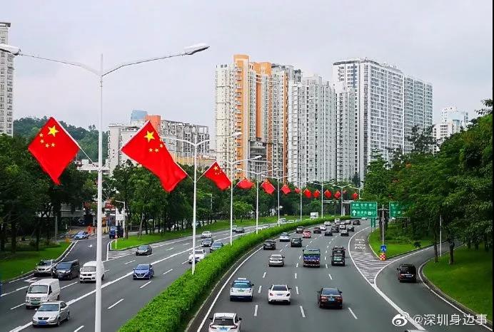 五星红旗在全城飘扬,成为了深圳街头最美的色彩。