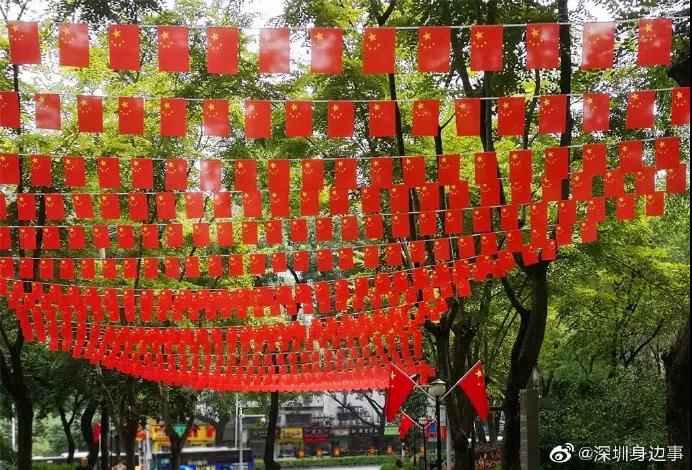 最近出门有没有发现,深圳处处可见五星红旗飘扬,大街小巷已然变成红色的海洋!