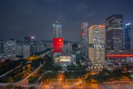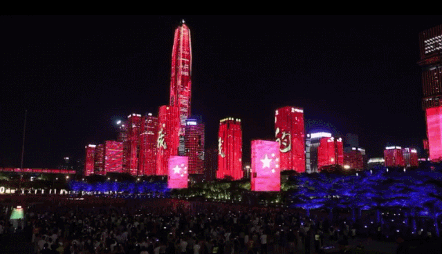 9月20日晚,国庆特别版灯光秀在市民中心广场首演,吸引不少市民前来观看。伴随着激昂振奋、节奏明快的音乐,楼宇间闪耀着跳动的光影······夜空下的国庆版灯光秀绝美耀眼,不仅是深圳城市发展的见证,更承载着深圳市民的爱国之心。