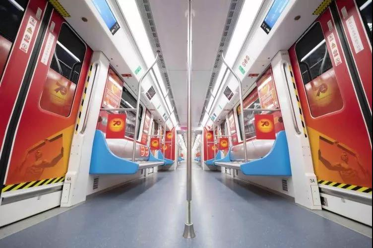 “庆祝中华人民共和国成立70周年”主题列车目前已在深圳地铁3号线上线,大家去打卡了吗?