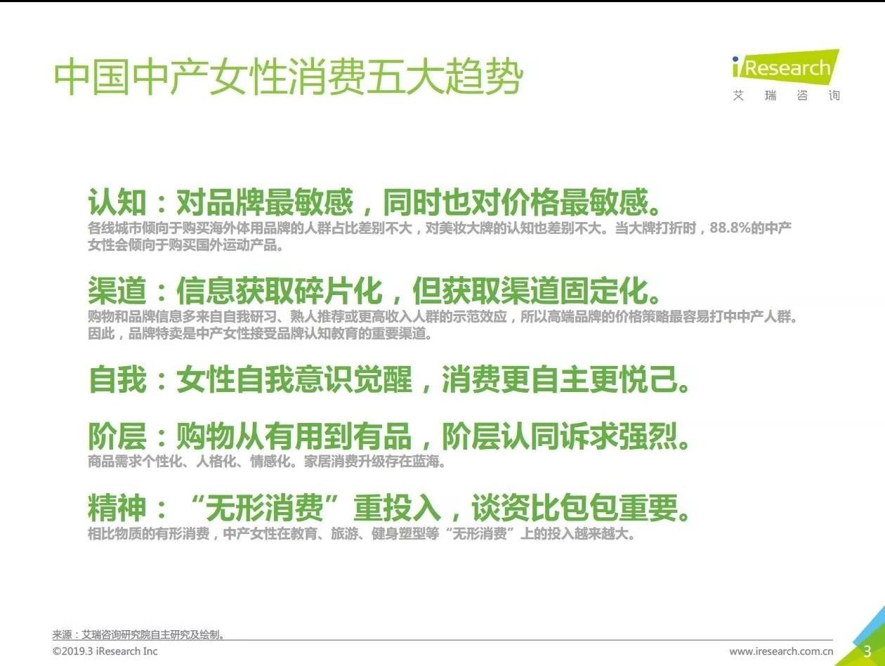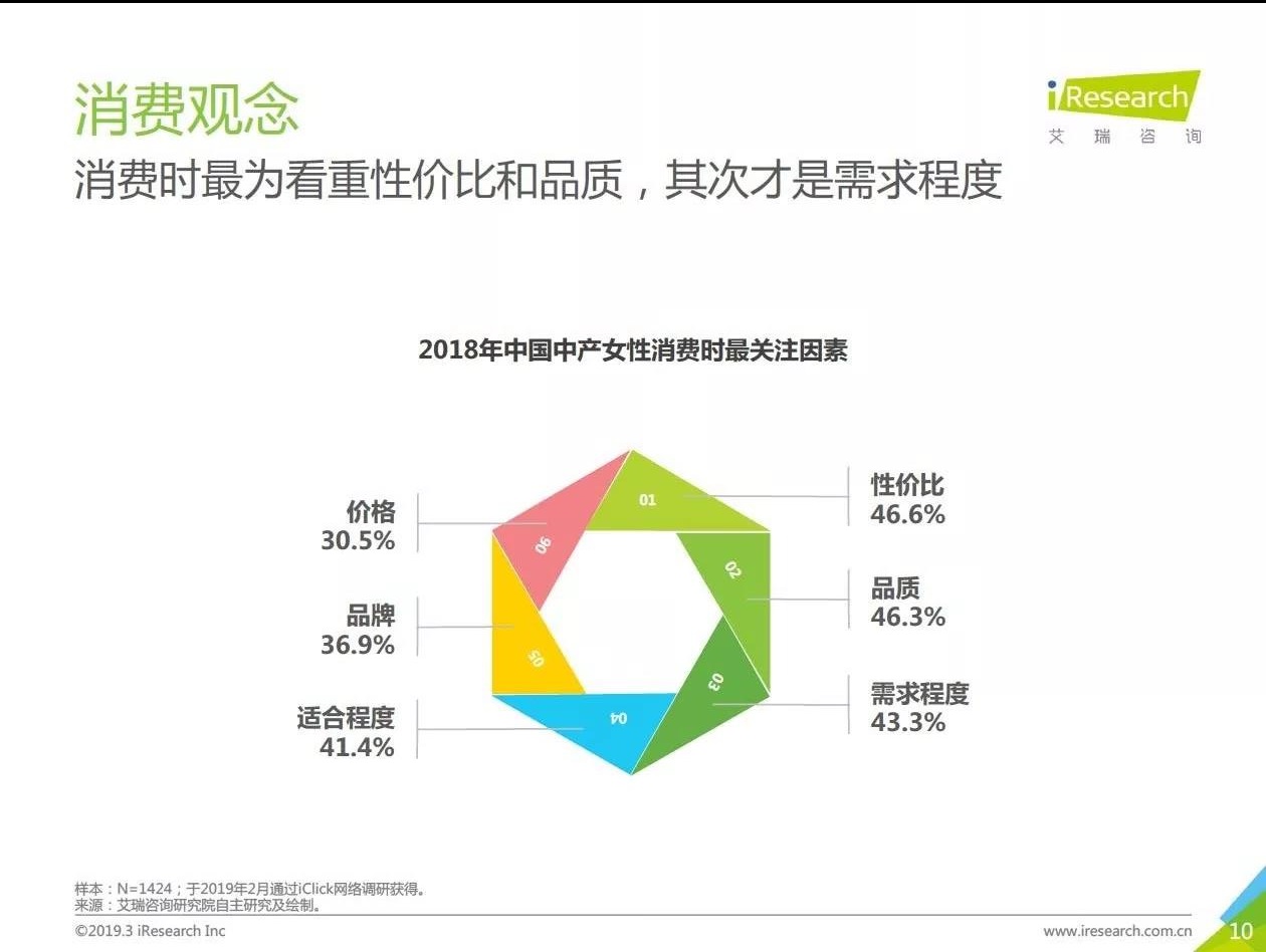 理性的消费文化已经形成,中产女性对品质、性价比的敏感度将越来越高。