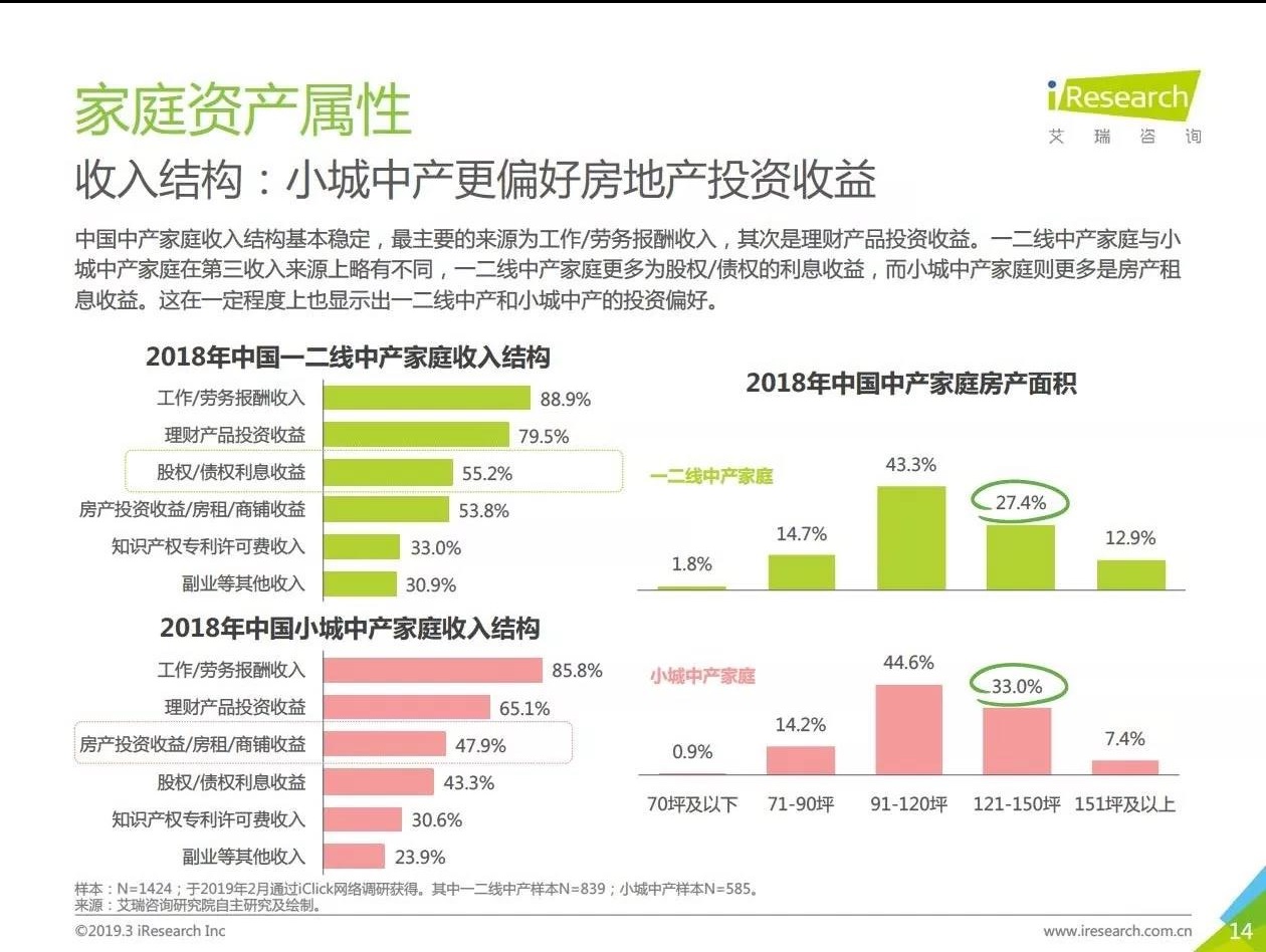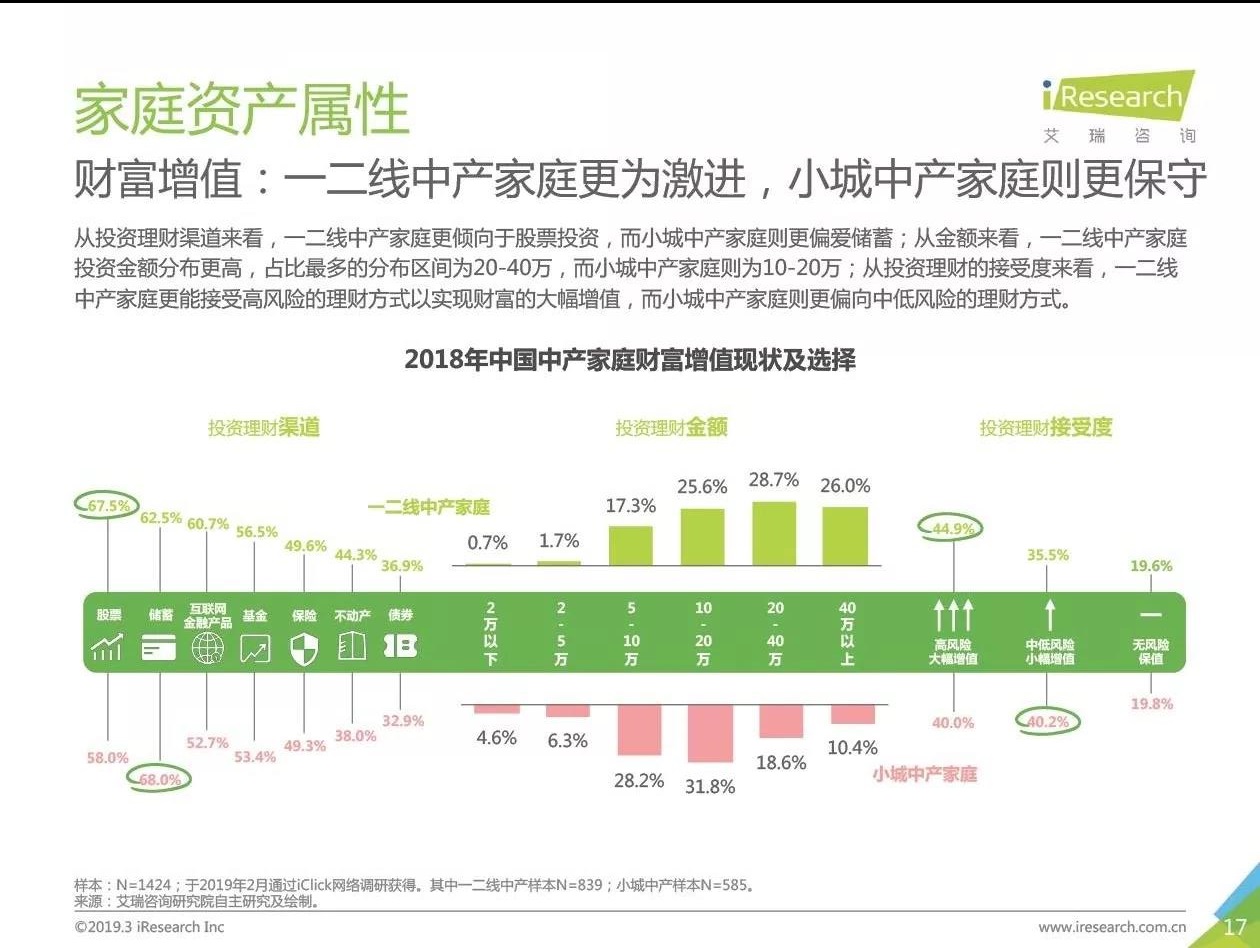 一二线中产女性已婚比例更高,达到71.7%,且婚姻状态更为稳定,股权债权利息收入高。小城中产女性离异比例高于一二线,投资房产比较多。