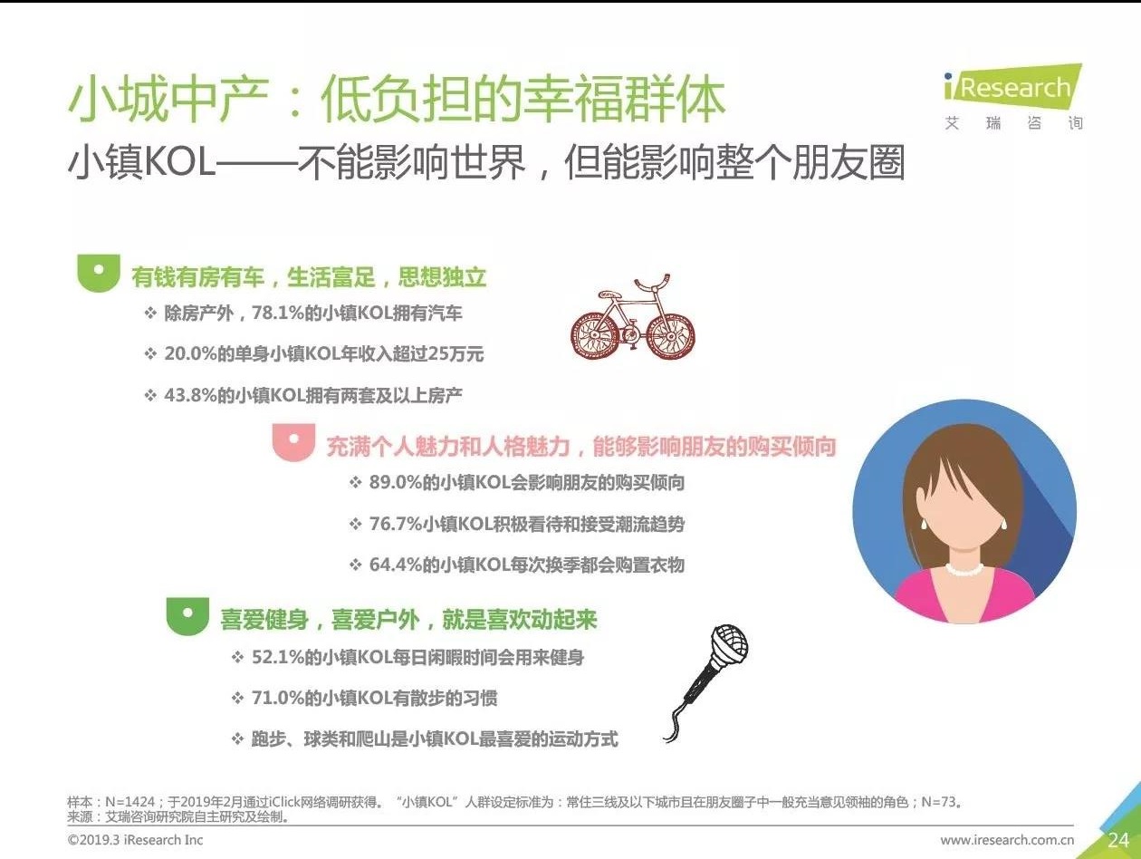 小镇KOL——有钱有房有车,生活富足,思想独立,充满人格魅力,能够影响朋友的购买倾向。