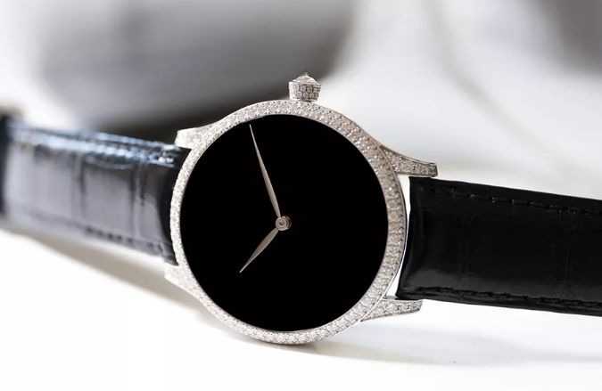 亨利慕时全新冒险者Vantablack镶钻概念腕表,将纯净的白金、耀眼的钻石与采用天文物理创新材质Vantablack制作的超黑表盘结为一体,同时取消了品牌标识、时标等所有表盘标志。