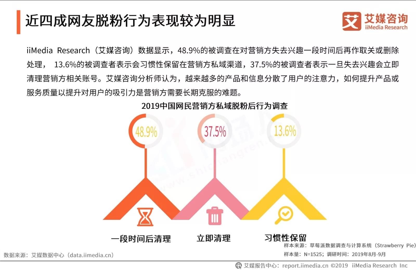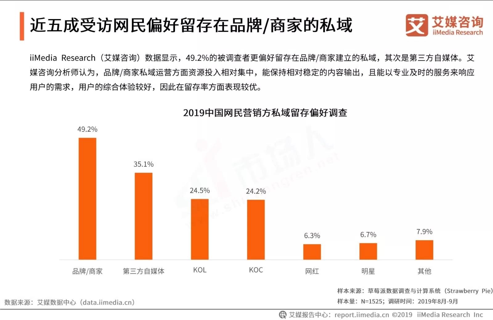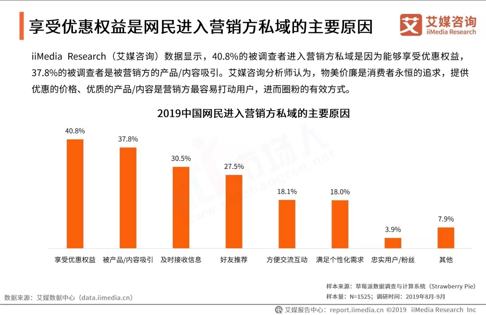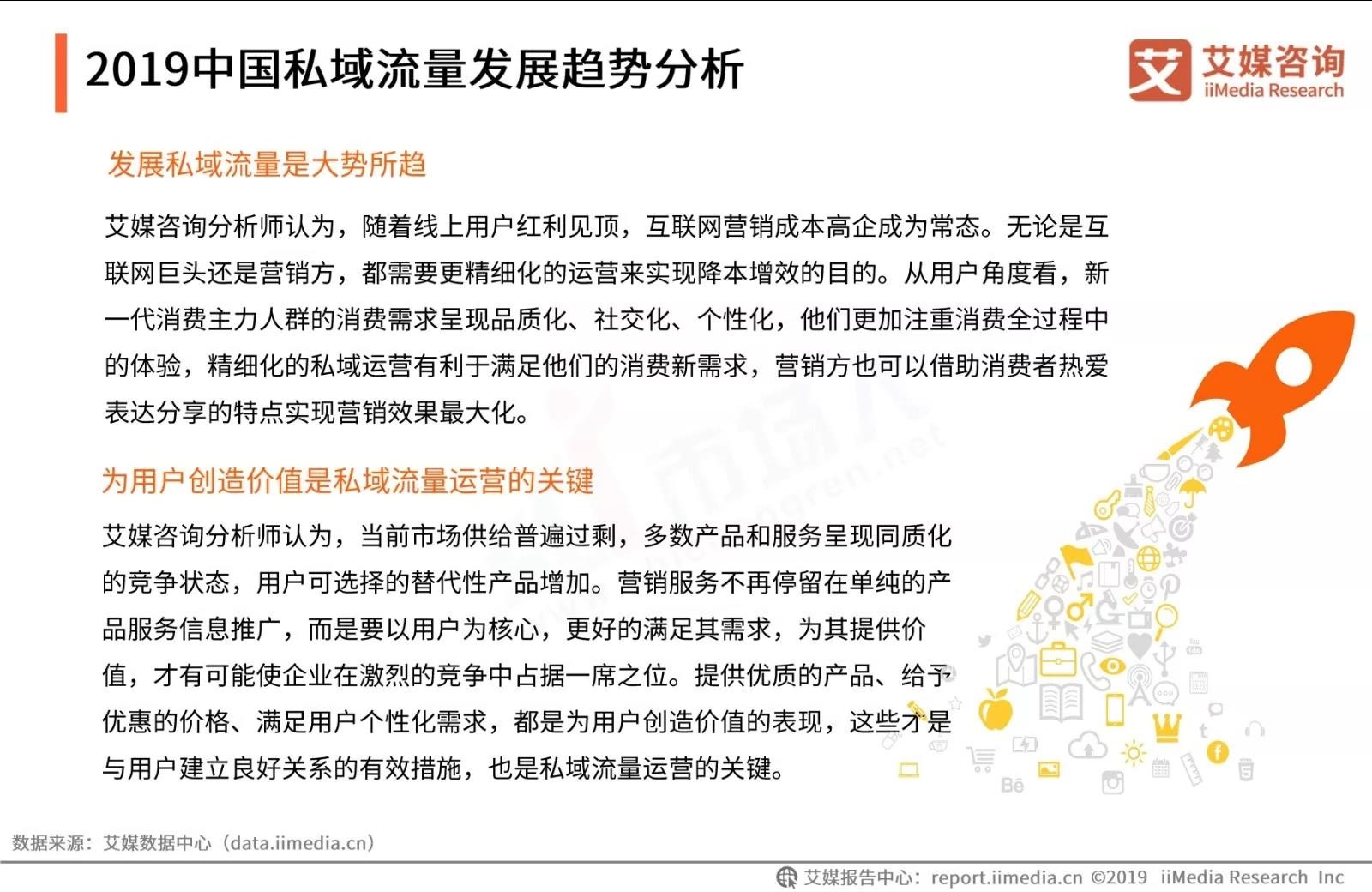 前不久,iiMedia Research发布了《2019中国私域流量现状剖析及发展前景预判分析报告》,从中国私域流量发展现状、用户调查分析及发展趋势分析,为品牌、商家下一步营销布局提供数据参考。