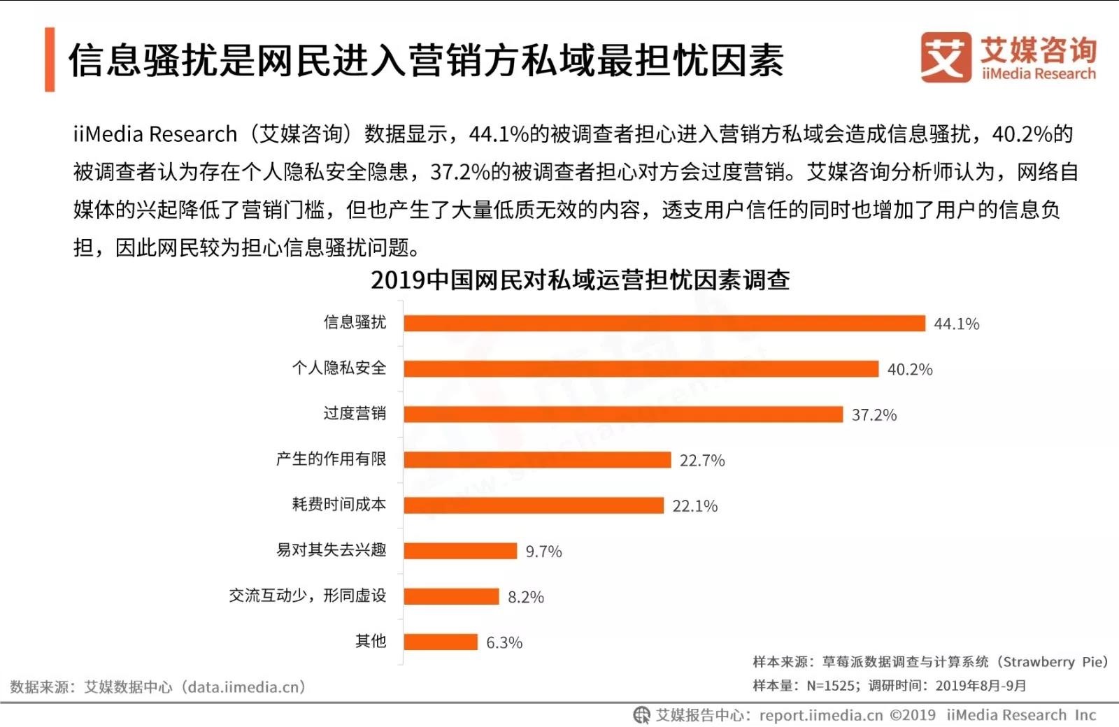 反对私域流量运营的受访网民仅占7.6%,40.8%的受访网民因能享受到优惠权益进入营销方私域,信息骚扰仍为网民最担忧因素。