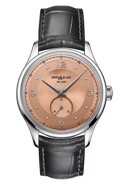 万宝龙全新推出一款珍贵且极具魅力的传承系列小秒针腕表,腕表以美耐华手动上链机芯MB M62.00致敬美耐华表厂卓越的高级制表历史。配以39毫米精钢表壳和独特的三文鱼双色喷漆表盘,镌刻美耐华秘密签名,搭配灰色晕涂鳄鱼皮表带,打造经典纯粹的复古设计,限量38枚。