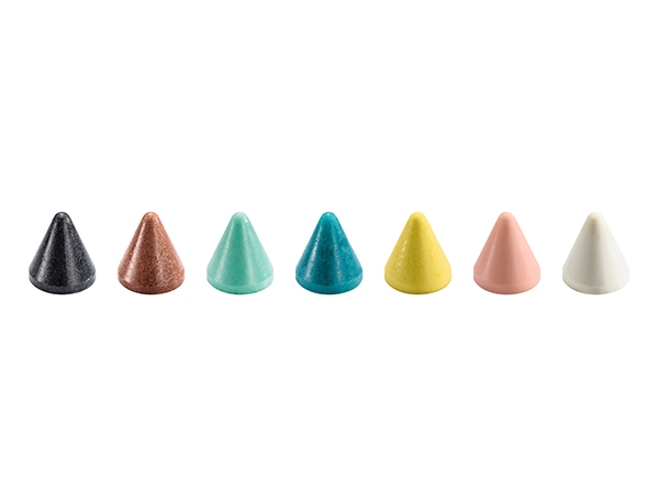 塑质研磨石一般应用于硬度较软的有色金属或胶制品表面磨平、磨细。如:K金、925银、铜、亚克力、塑胶制品等。产品形状分别有圆锥形、四面体、金字塔、子弹头、不定形、斜三角、三星形。尺寸大小有7mm、10mm、15mm、20mm。