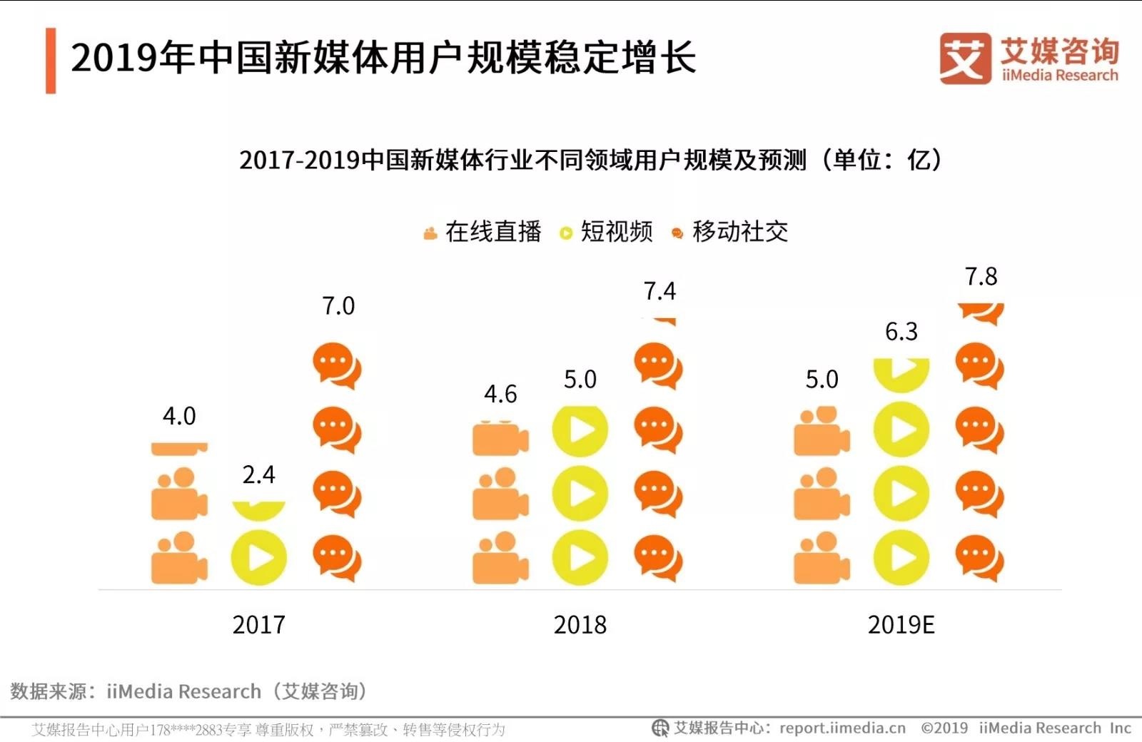 2019年,移动社交用户规模预计达到7.8亿,同时,短视频和在线直播用户也均保持较快增长势头,为新媒体营销提供了较好的流量基础。