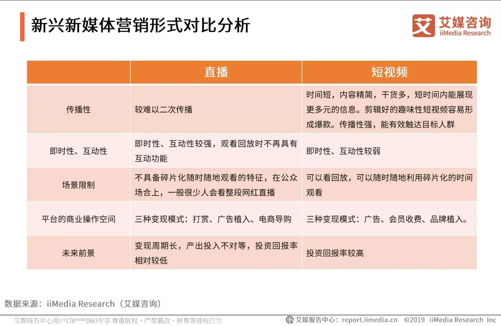 5G行业发展进一步推动直播与短视频行业的变革。而视频营销展示直观全面、即时性、交互性强的特点与企业营销的目的更加契合,在大数据以及人工智能技术的加持下,短视频营销有望成为新媒体营销主流方式。