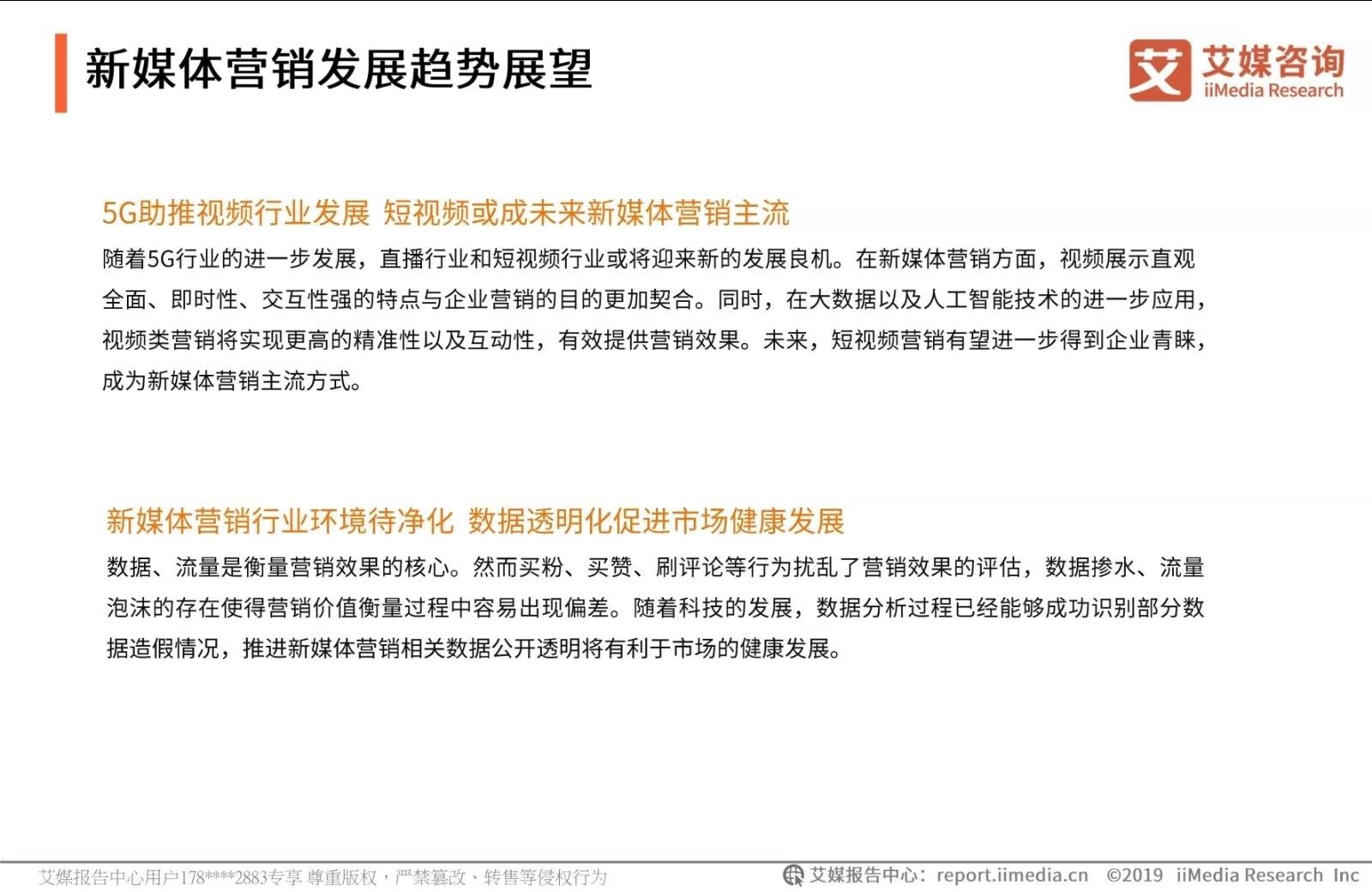 不久前,iiMedia Research艾媒咨询联合IMS发布了《2019中国新媒体营销价值专题报告》,深度解读中国新媒体营销的价值与未来发展。
