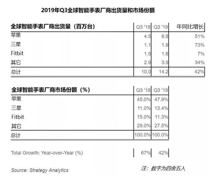 11月7日,市场调研机构Strategy Analytics发布了2019年第三季度全球智能手表的出货量报告。