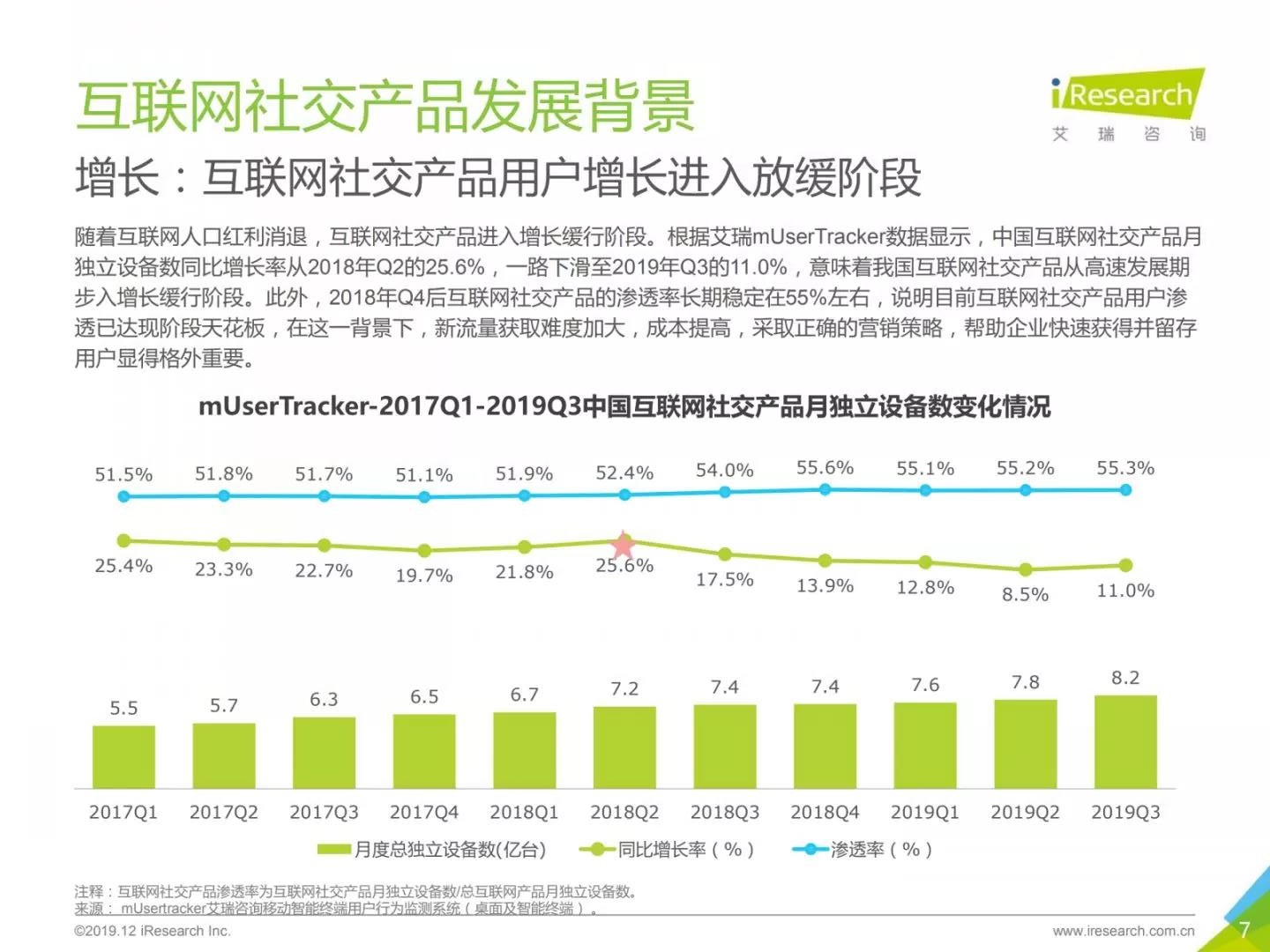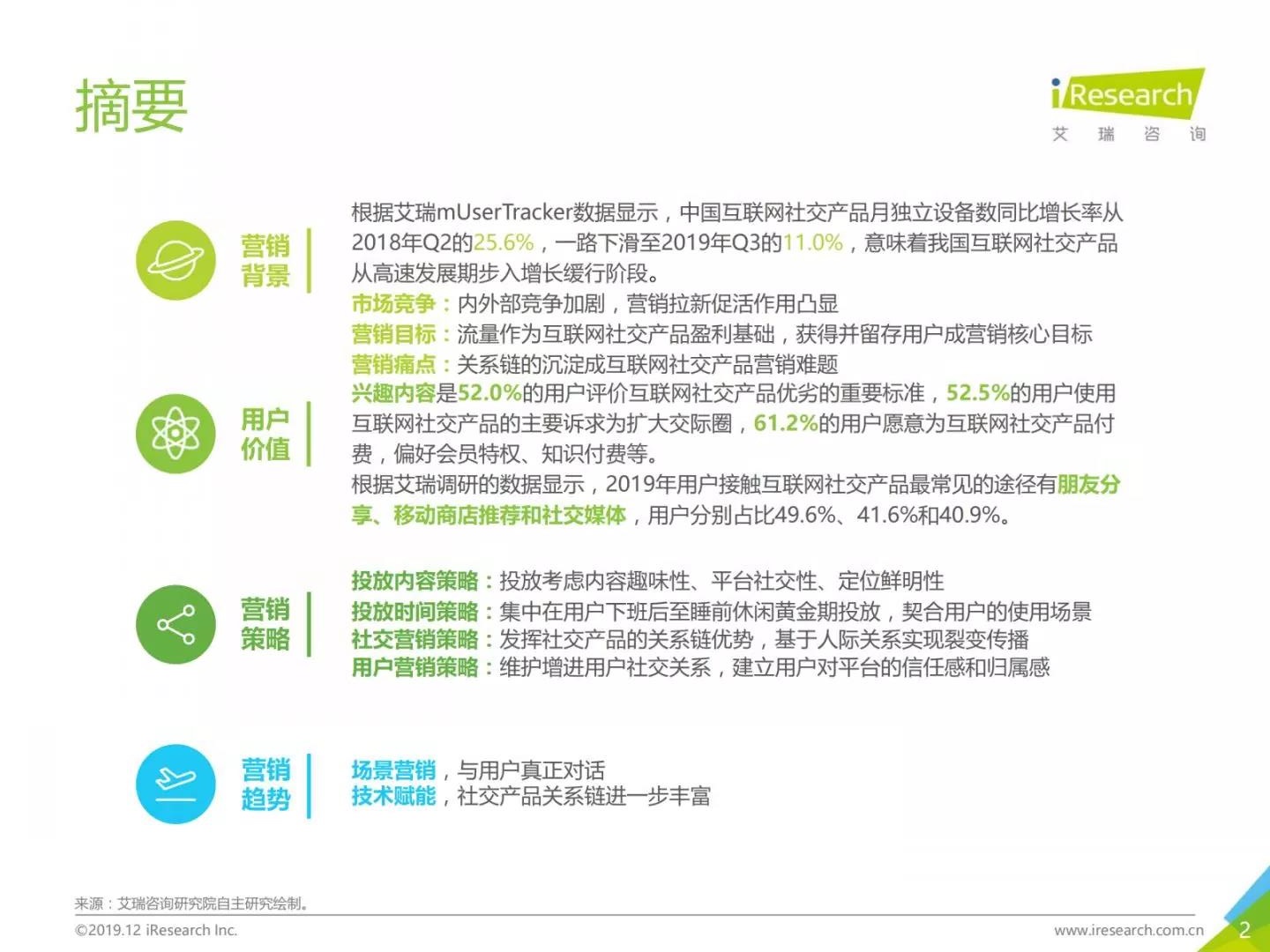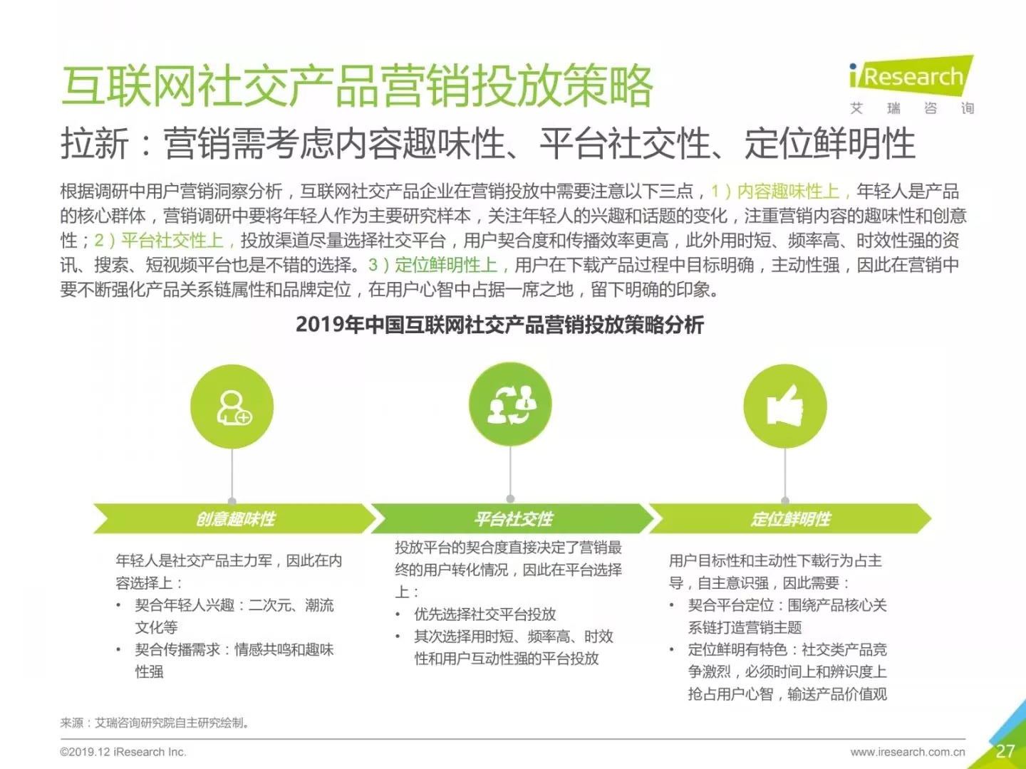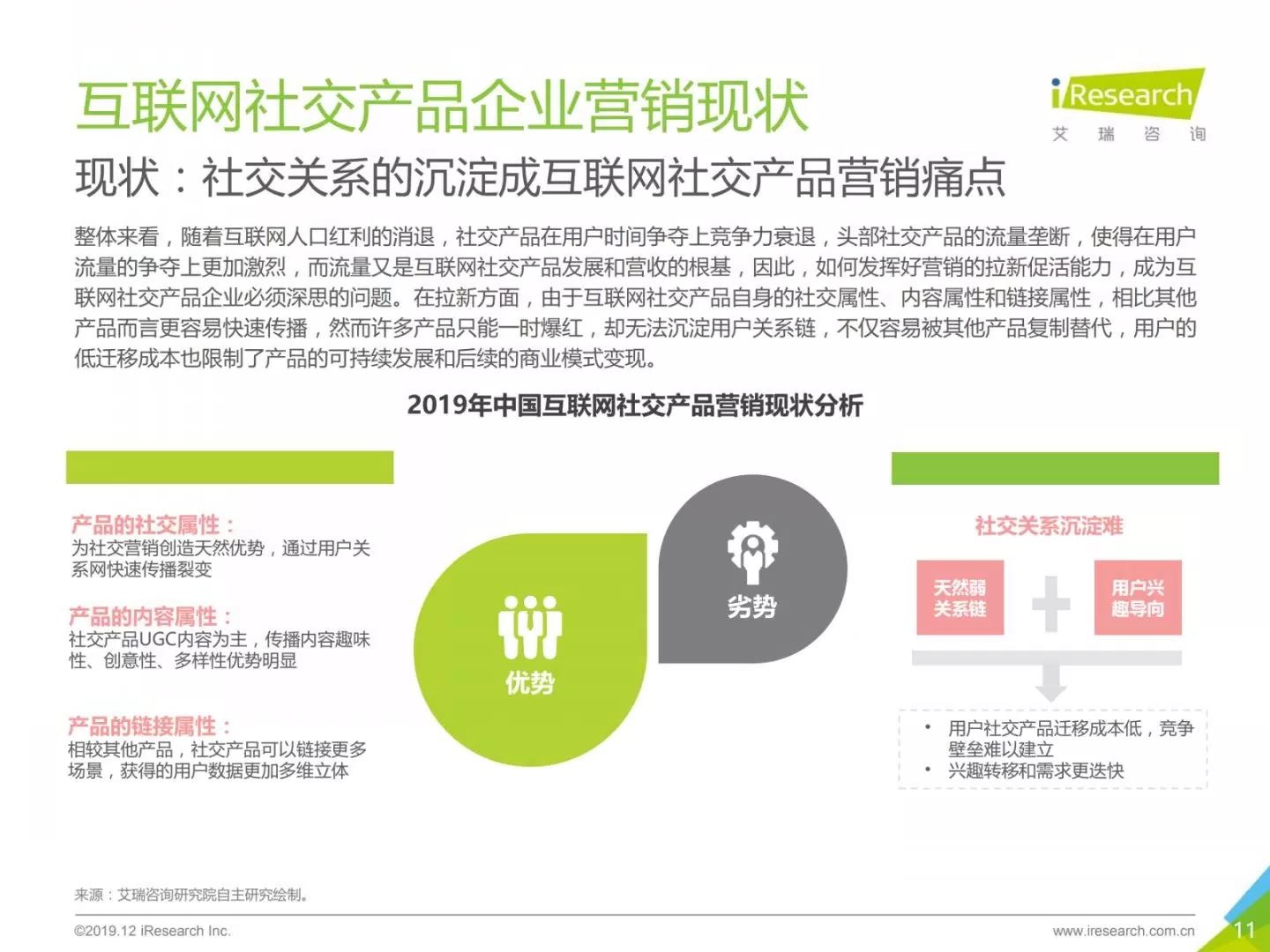 因此,本期内容,我们想与大家分享来自艾瑞咨询发布的《2019中国互联网社交企业营销策略白皮书》,从当前我国互联网社交产品的营销环境、用户洞察、营销策略、营销趋势四方面进行剖析。希望您能基于社交产品现状及趋势,得到未来品牌在社交营销上的一些思考。