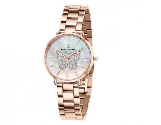 新锐时尚腕表品牌BlackByBlueBrave(4B)手表,推出了精致灵动的Beauty系列。该系列将大自然的诗情画意,精巧融入腕表的设计及工艺之上,设计师运用150颗高品质晶钻镶嵌出蝴蝶翩翩起舞的优雅形态,颂扬女性的蜕变之美。除了表盘镶嵌高品质晶钻蝴蝶图案之外,还采用天然珍珠母贝材质作为整个字面的材料,海水打磨过的光泽,取之天然,精致优雅。