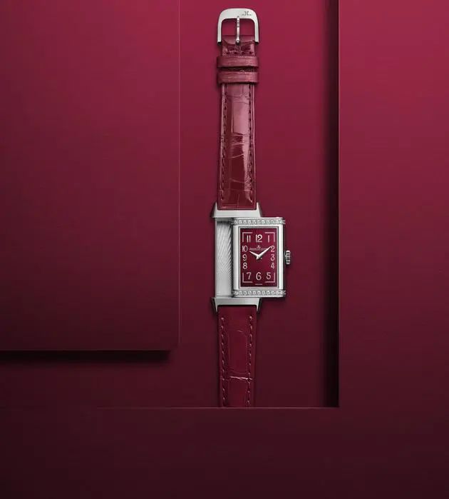 2020年,积家大工坊以全新美学概念重新演绎备受喜爱的女士表款——Reverso One翻转系列腕表。纤长的表壳灵感源自1931年首款Reverso Lady翻转系列女装腕表;一排精美的粒面镶钻,点缀着表壳上下边缘的装饰刻纹,引入全新勃艮第红表盘,精美的太阳放射状玑镂饰纹,以层层亮漆涂饰,闪耀明亮光泽,与银白色数字时标和冰雪晶莹的抛光精钢表壳相辅相成。全新勃艮第红亮面鳄鱼皮表带作为点睛之笔,与表盘互相呼应。精钢表背还可用于镌刻个性化图案。