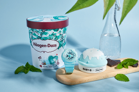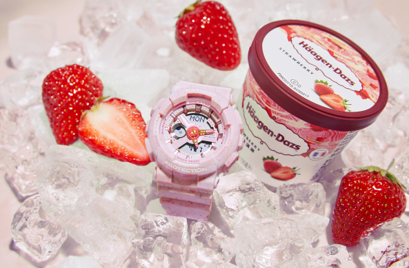 BABY-G与哈根达斯联名推出ICE CREAM主题礼盒,520高甜示爱“我的冰淇淋女孩”。此次全新ICE CREAM主题腕表,BABY-G选用了畅销系列GA-110作原型,将冰淇淋的色彩和质感,融入到了腕表的创意设计中。除了表圈,表带的细节也很有看点,运用特殊工艺,营造出如同水果纤维颗粒,洒落在入口即化的冰淇淋上的梦幻感。