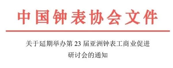 近日,中国钟表协会发布消息,由于蔓延全球的新冠疫情,尤其是亚洲周边国家和地区疫情仍不乐观,给原定于2020年在中国举行的第23届亚洲钟表工商业促进研讨会带来各项困难和不确定性,因此,在与业界友好协会研讨,研究决定延期举办第23节亚研会,具体举办时间将另行通知。