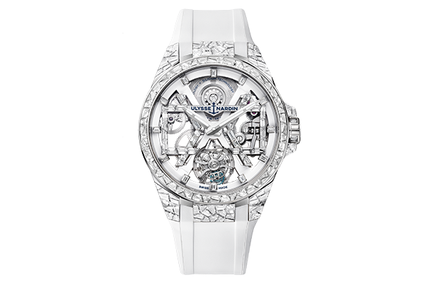 雅典表惊艳推出一款全新时计——SparklingBlast高级珠宝腕表。这款全新甄选之作,别具匠心,采用白金材质打造,限量推出三枚白色橡胶表带款和三枚深蓝色鳄鱼皮表带款。