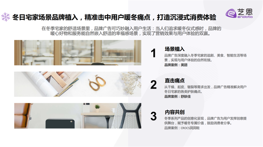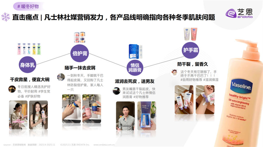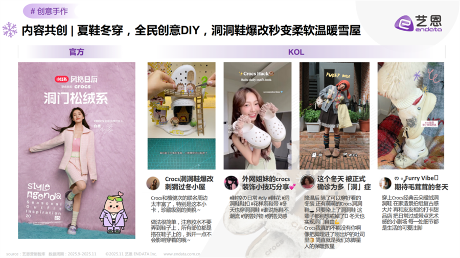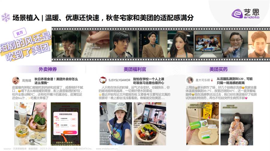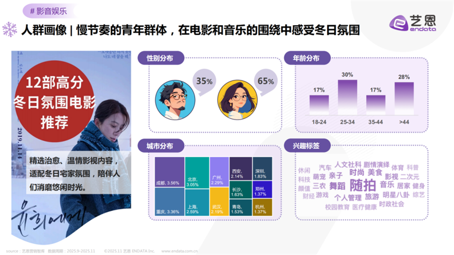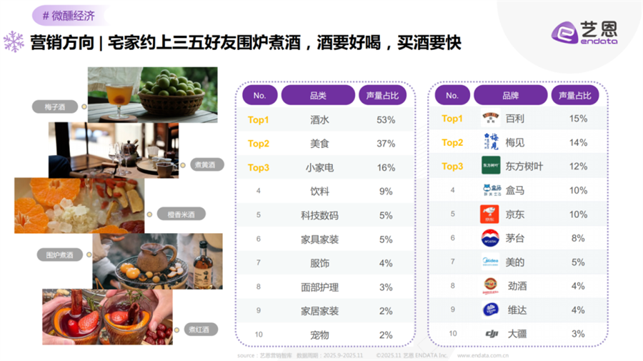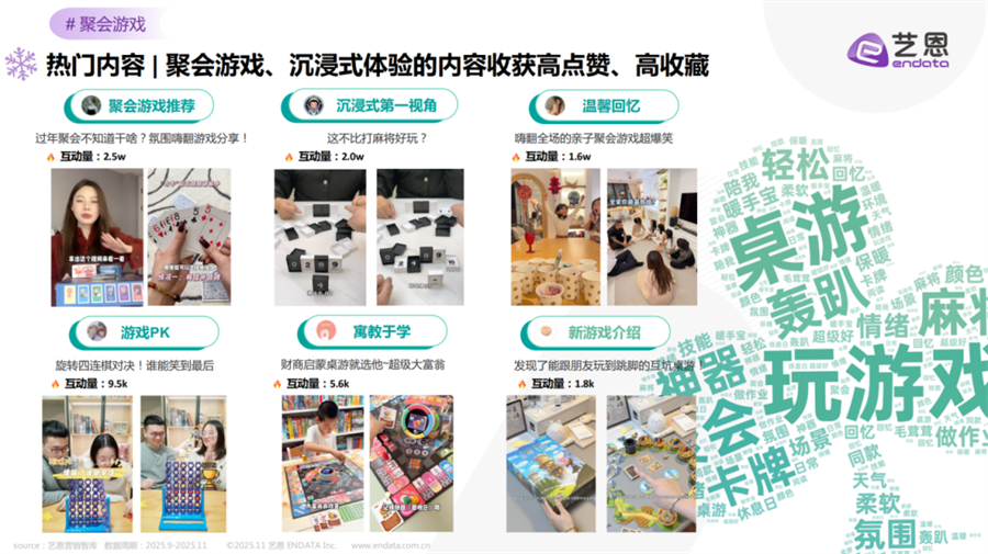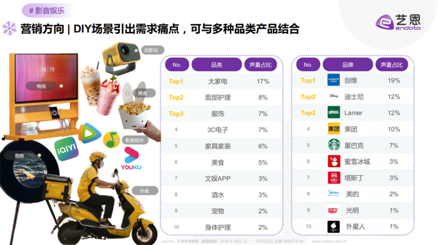 艺恩发布了《2025冬季室内娱乐社媒趋势与品牌机遇》报告,随着气候变冷,品牌10月开始布局种草,通过好物推荐类话题进行营销,冬日宅家场景品牌植入,精准击中用户暖冬痛点,打造沉浸式消费体验。
