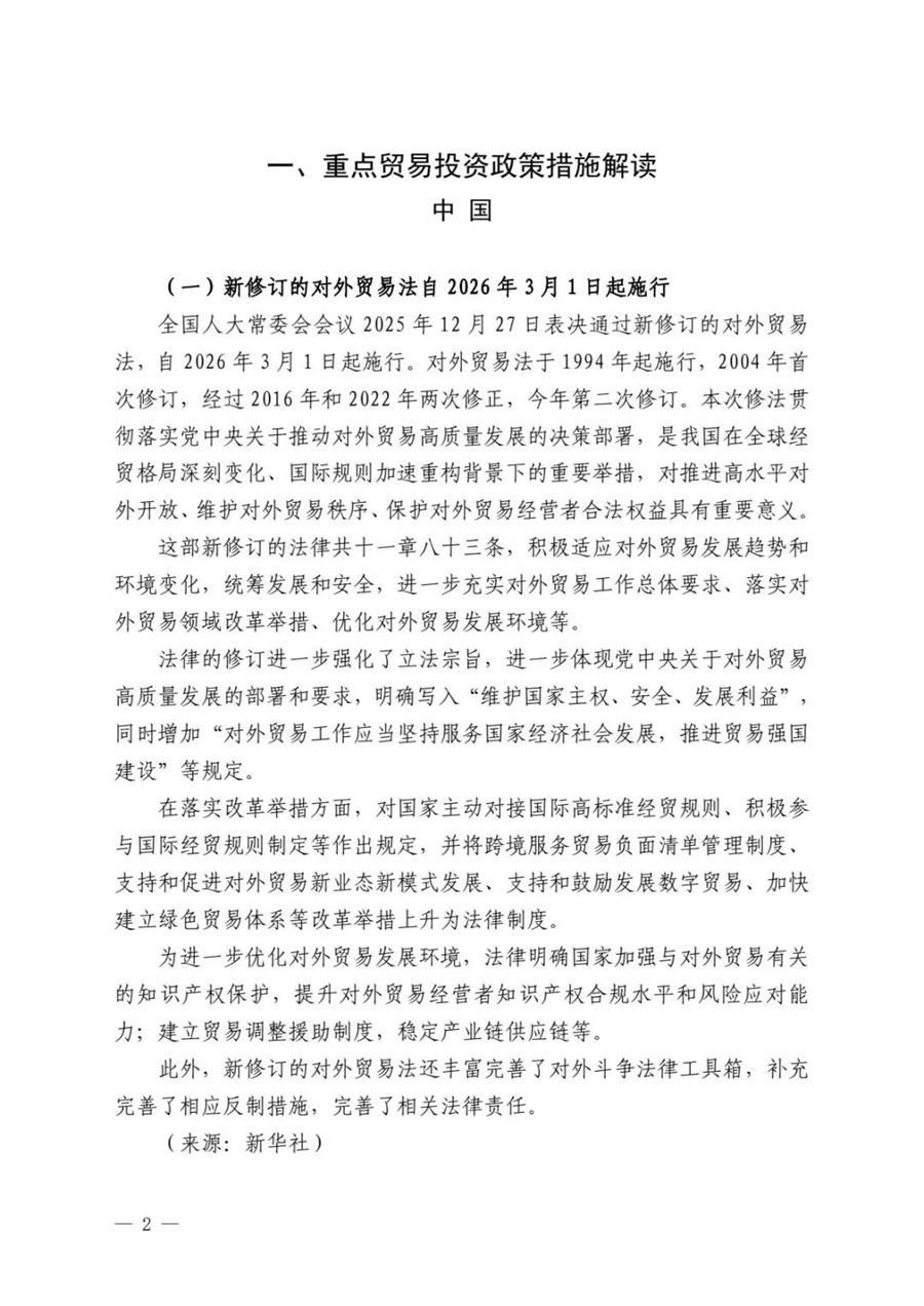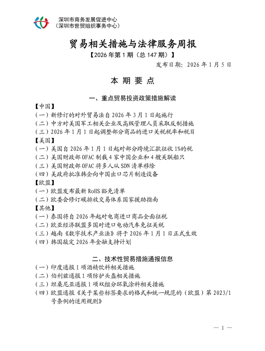 【关注】贸易相关措施与法律服务简讯 2026年第01期