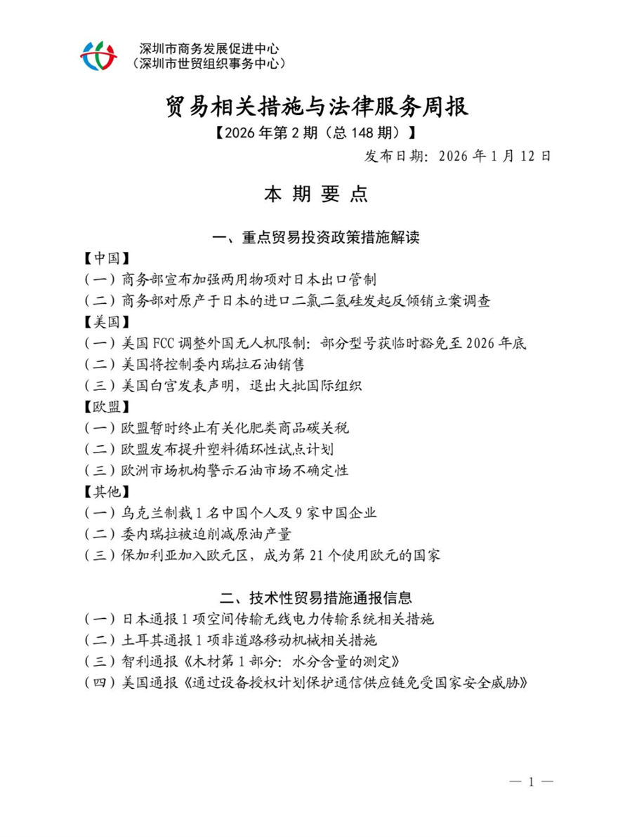 【关注】贸易相关措施与法律服务简讯 2026年第02期
