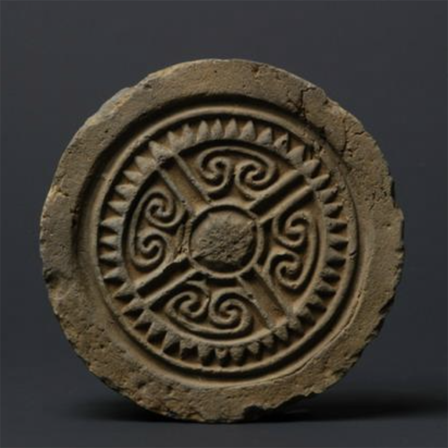 驻足在古建筑的屋檐下,会发现在整齐排列的筒瓦最前端,有一块向下垂着的圆形或半圆形构件——它就是瓦当。
