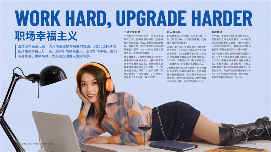 基于《2026年Z趋势报告:清醒的一代》所呈现的数据与案例,可以清晰看到,Z世代正在从“被塑造的一代”转向“自我定义的一代”。报告显示,超过七成Z世代认为“清楚知道自己不想要什么”比“明确成功标准”更重要。这种价值排序的变化,使得人生路径不再围绕单一上升通道展开,而是呈现去中心化与多轨并行特征,直接冲击传统教育、就业与消费体系。