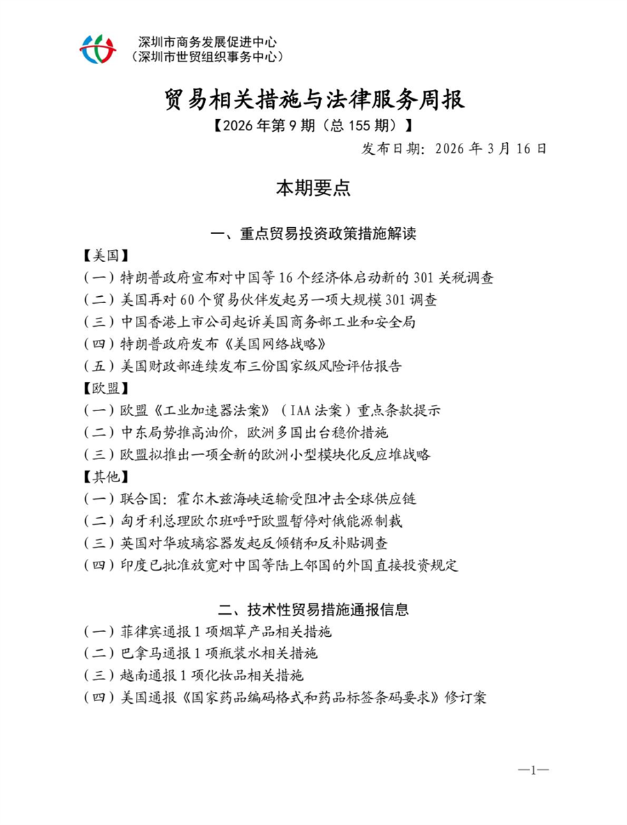 【关注】贸易相关措施与法律服务简讯 2026年第09期