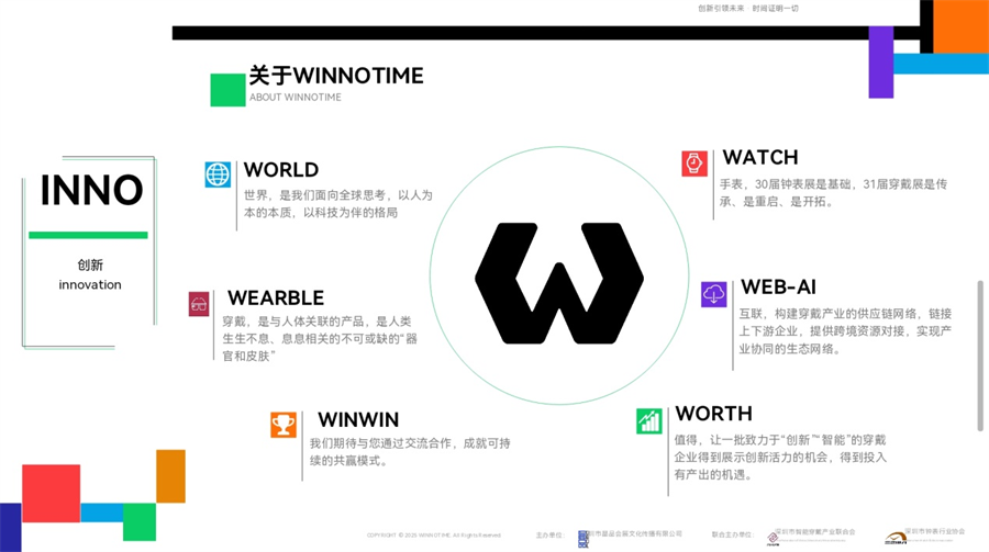 朱舜华会长回顾了深圳市钟表产业和协会发展的历程和重要节点,他表示,当前钟表行业正处于新的发展阶段,行业需要粘接需要整合,需要品牌及企业及时调整发展新思路,采取新的发展策略。随后朱会长重点分享今年初 WINNOTIME 团队在欧洲与德国、法国、瑞士与政府相关部门、国家级行业组织、独立制表人、品牌企业与合作机构等开展的面对面交流,是一次真正意义上的产业深度对话。同时,通过对WINNOTIME对 W + INNO + TIME 六个维度的解读,再次介绍了即将于2026年6月26日举行的第31届深圳手表周和2026穿戴创新展的定位以及对钟表产业当前及未来发展的意义。
