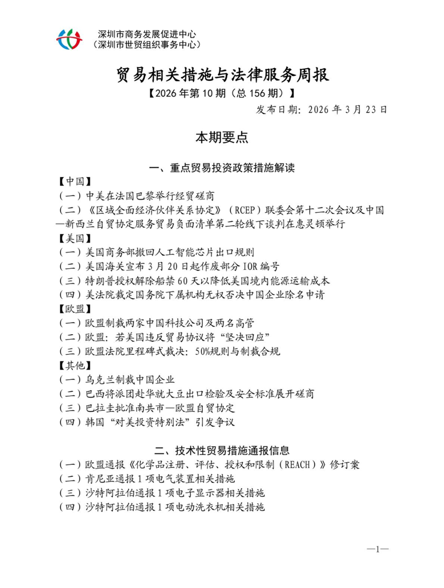 【关注】贸易相关措施与法律服务简讯 2026年第10期
